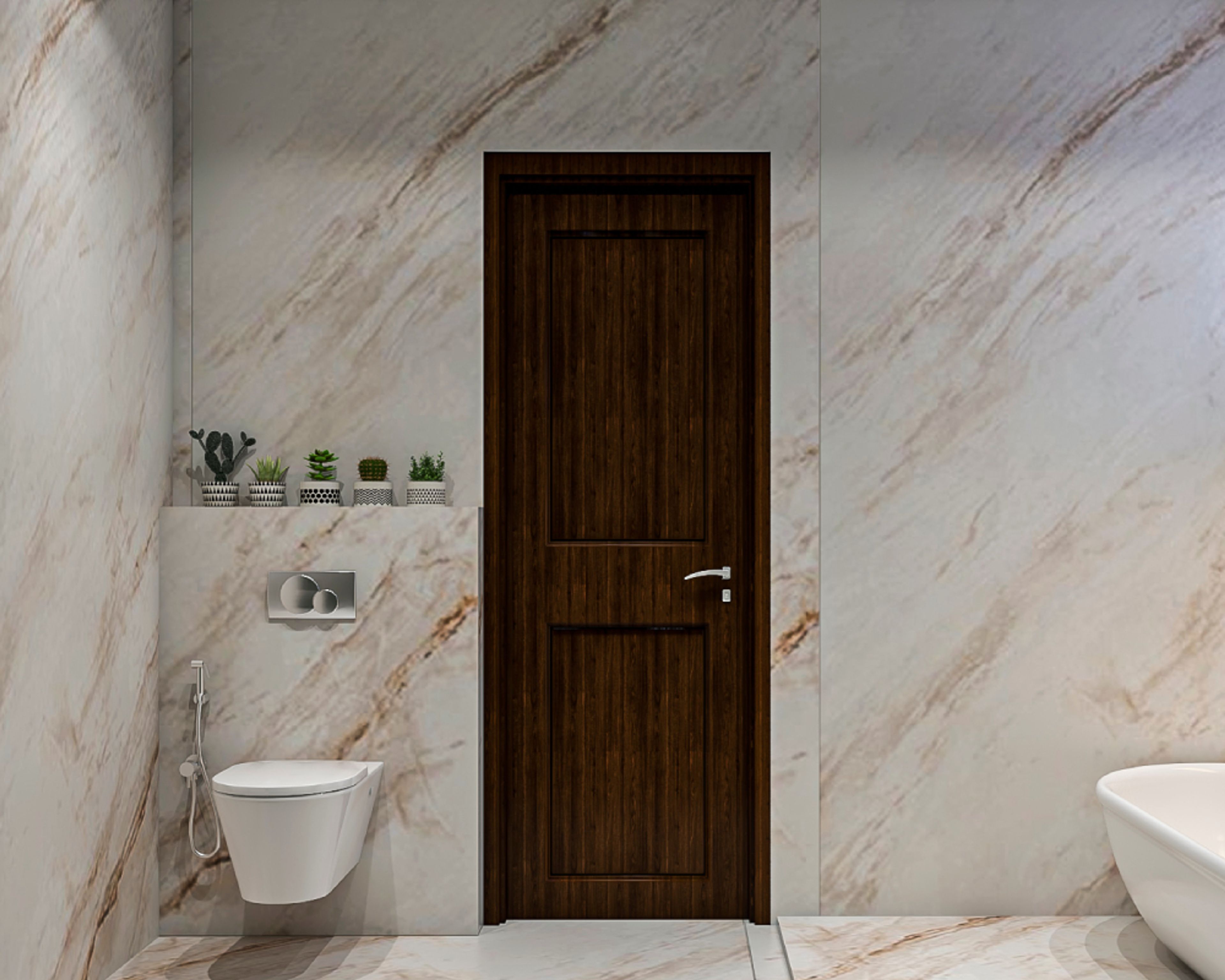 3.Vanity unit with wooden grain laminate shutters and white counter top with counter top basin