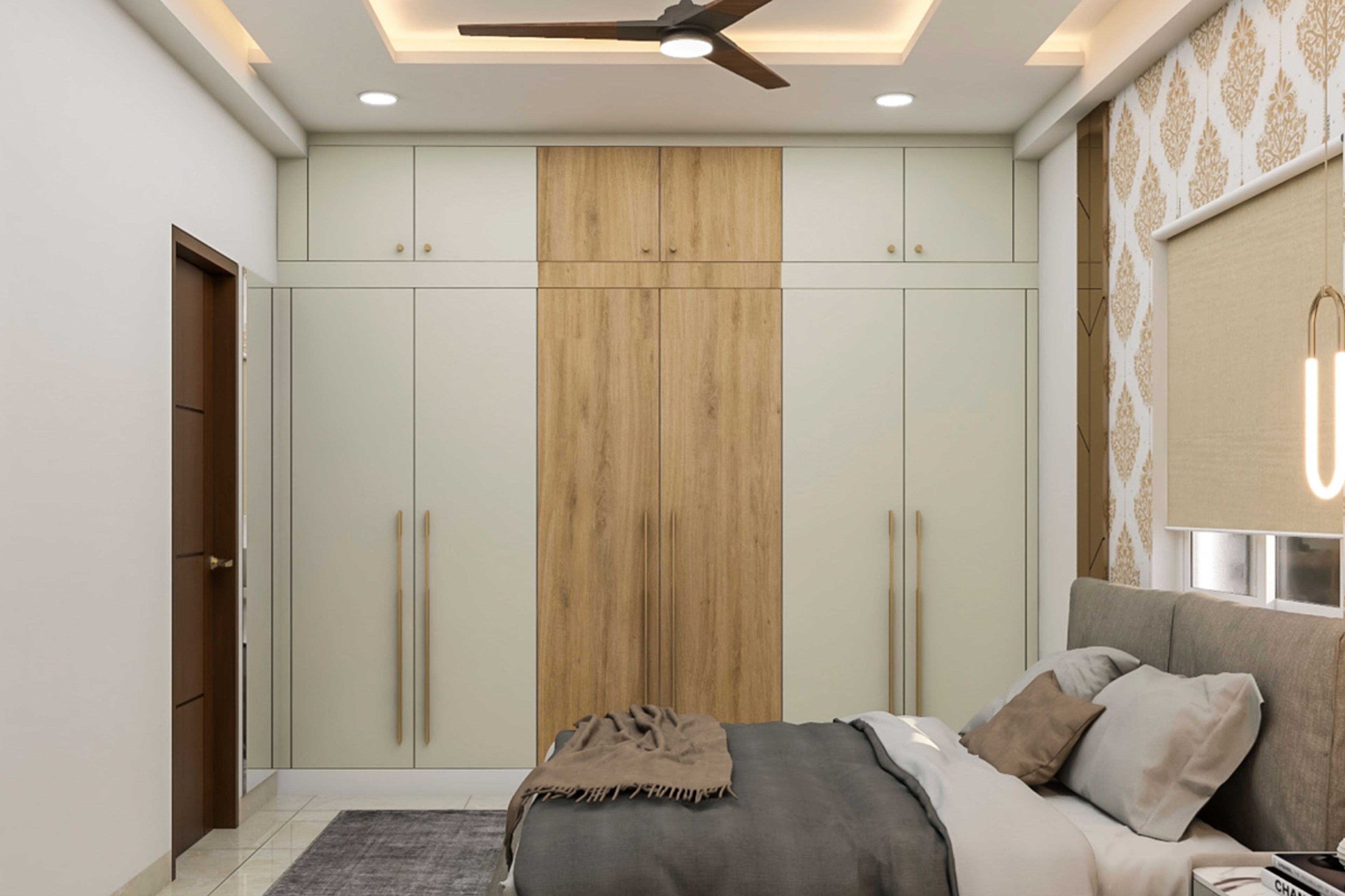 • Room Highlights: Spacious bedroom design in neutral colours with maximum storage