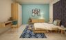 This kids bedroom offsets classic white and walnut finishes with a generous splash of teal.The two sideboards are placed together to create a long, continuous surface for displaying models or working on jigsaw puzzles etc. The study table and wardrobe are arranged around the L shaped corner allowing enough space for movement.