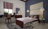 Interesting wall art adds a touch of cheerfulness and forms a bright backdrop for this room. Highlighted by strips of patterned wall paneling, the sturdy Mosman bed comes with plenty of discrete storage to tuck away toys,books and linen. A Felip coffee table placed on the side is just the right size for table lamps and other bedtime necessities. On the opposite wall, the Bob Compact wall hanging unit is fixed at counter height to serve as a study table. A Pilar sideboard serves as a dresser and provides additional storage.