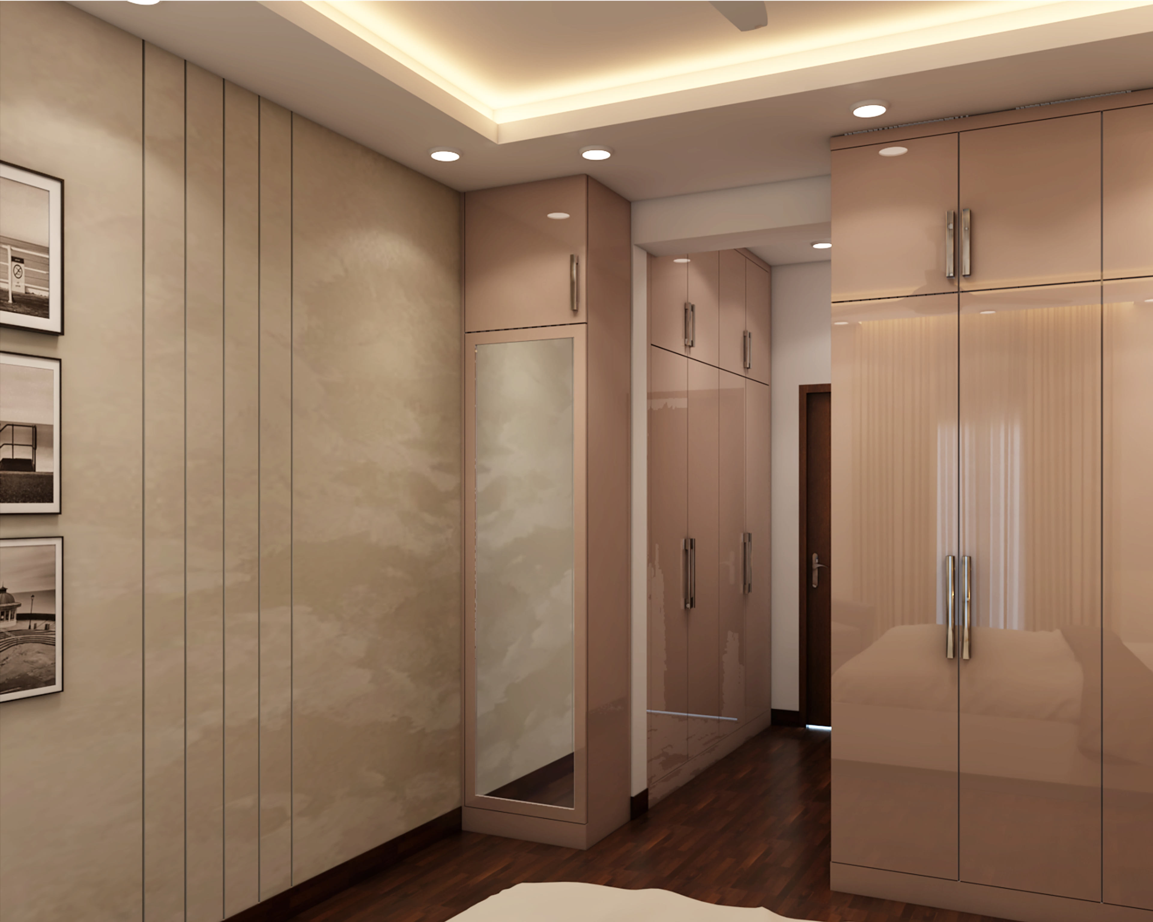 The cost of a modular wardrobe in India starts from Master bedroom design starts from ~ ₹1.25 lakh* for a mid-range finish (excluding structural changes). Premium or luxury versions may go up to ₹5–6 lakh* or more, depending on scale, materials, and customizations.