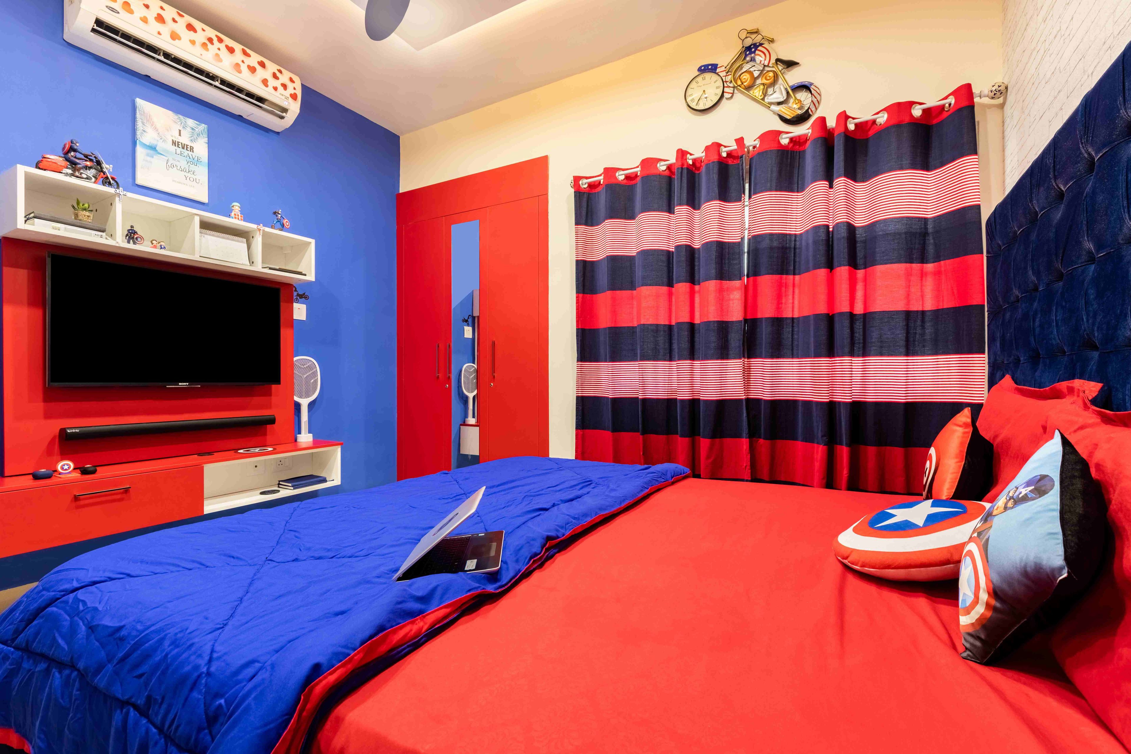 • Room Highlights: Bedroom design features a vibrant colour palette