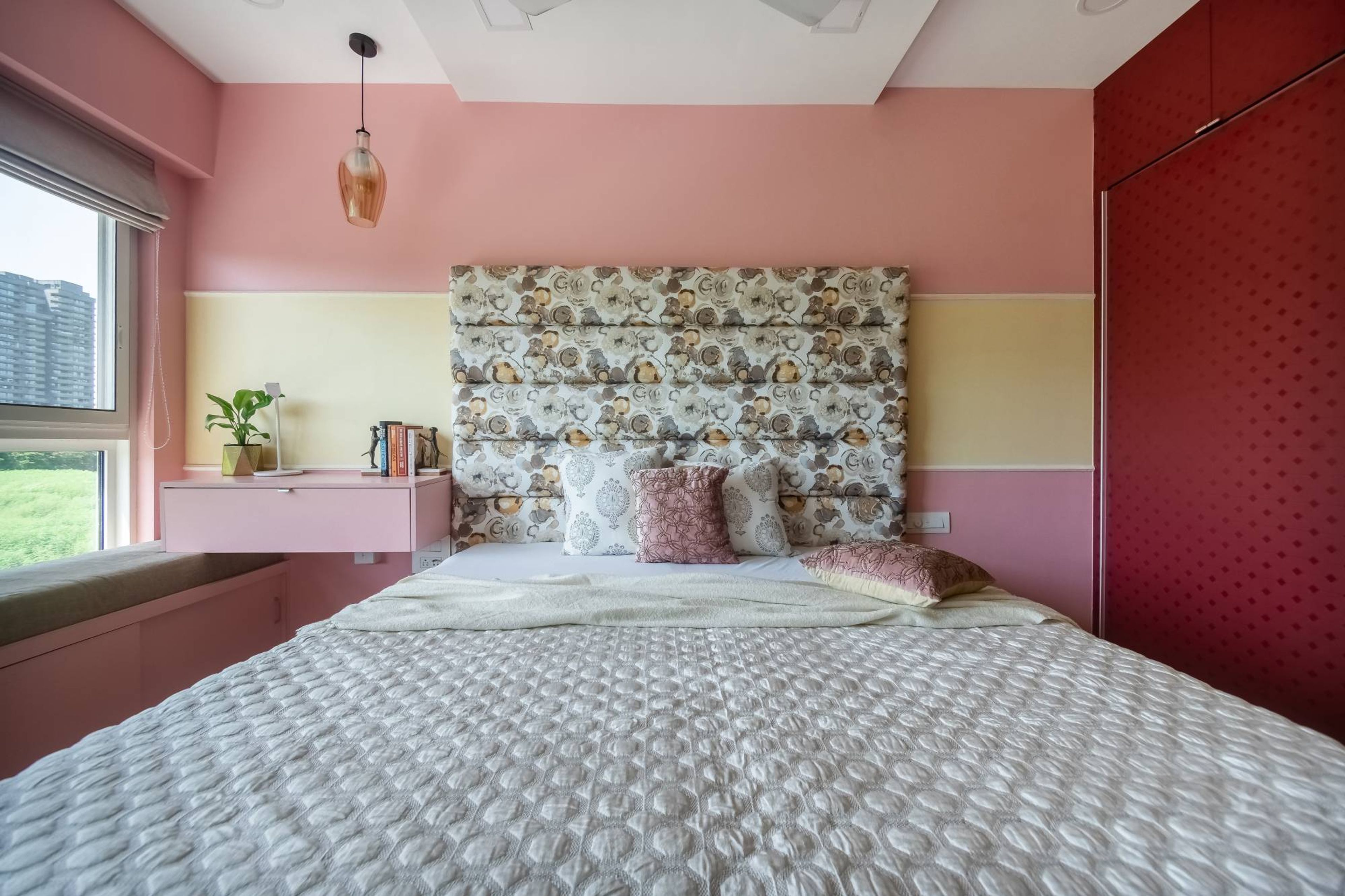 • Wall Features: Pink and yellow horizontal stripes