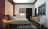 The elegant Paddington queen sized bed anchors the furniture arrangement in this room complete with a statement teal wall and a beige wall paper. Portabella sideboard provides ample storage space and Felip coffee table doubles up as a bedside table here with chic table tamps. Hunter wall mounted foyer unit with a mirror is the perfect dressing area complete with Gerardo armchair.