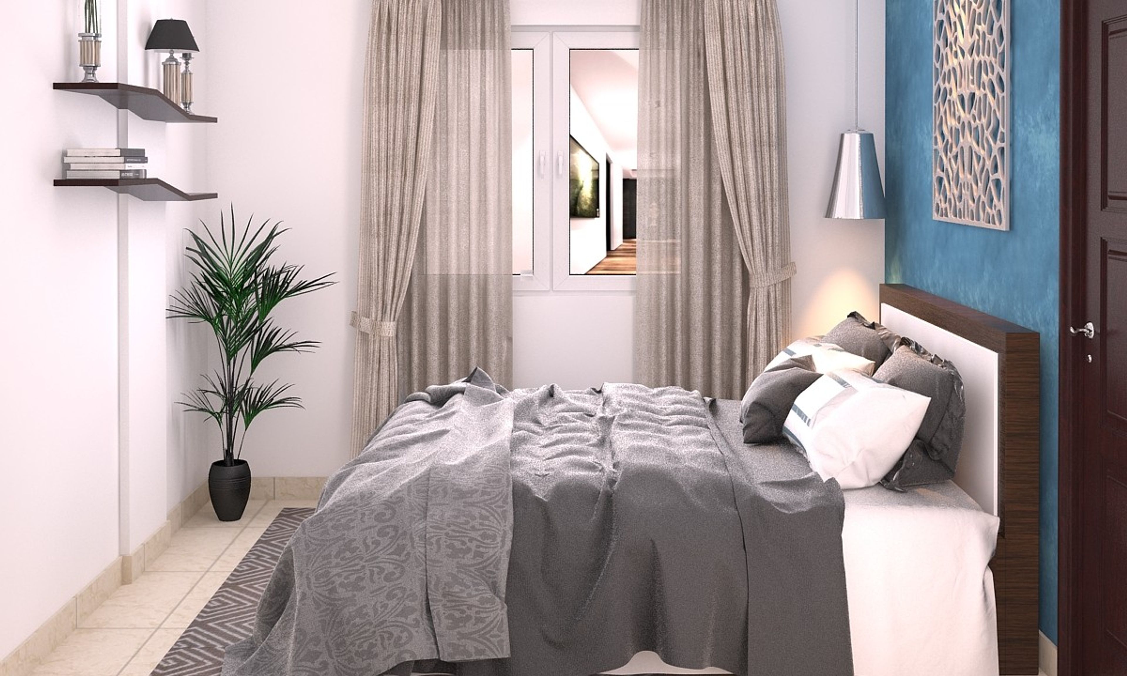 Home/.../Bedrooms/Modern Guest Bedroom Design With Wall Paint And Dark Furniture