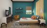 The elegant Paddington queen sized bed anchors the furniture arrangement in this room complete with a chic olive wall and a statement beige wall paper. Portabella sideboard provides ample storage space and Felip coffee table doubles up as a bedside table here with a chic table tamp. The other side of the bed has a floor length lamp which provides soft lighting in the room. The multicolored rug lends the perfect finishing touch to this bedroom.