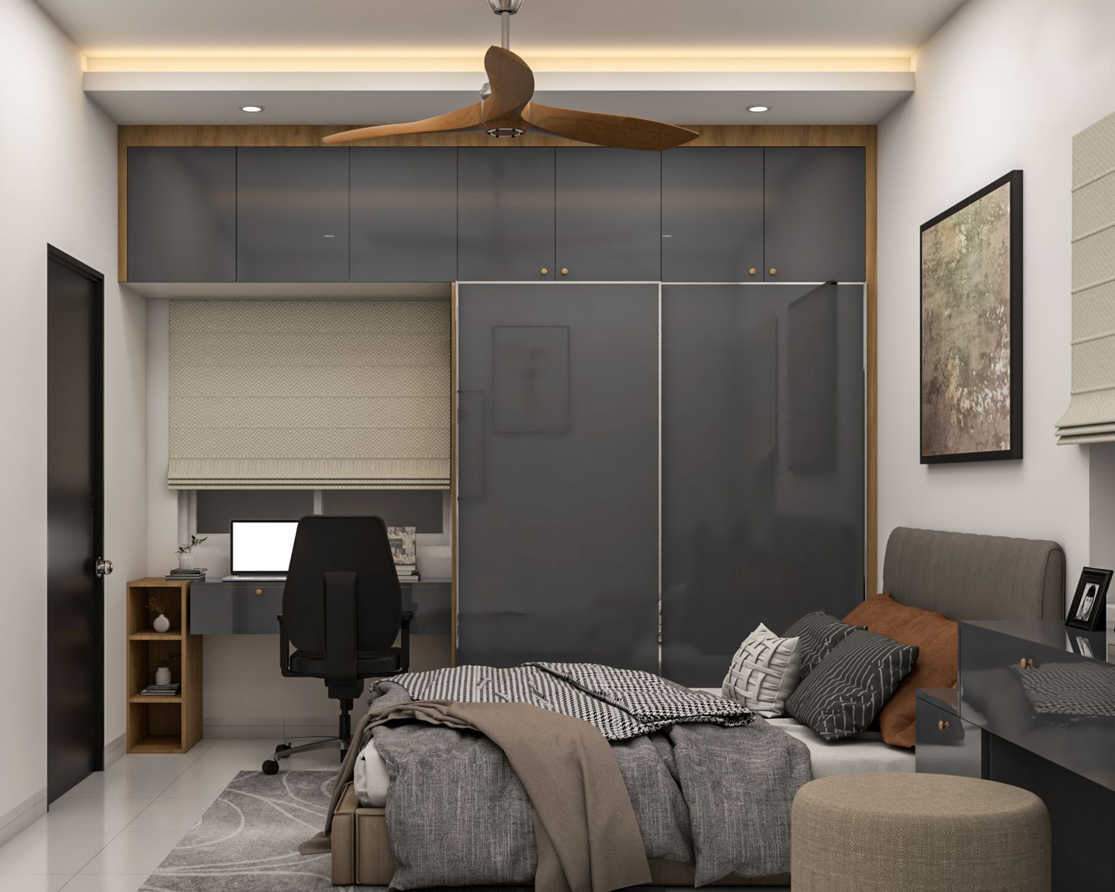 Modern Master Bedroom Design With Grey Shutter Wardrobe