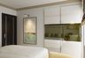 Functionality reigns supreme in this bedroom decorated with muted hues.
