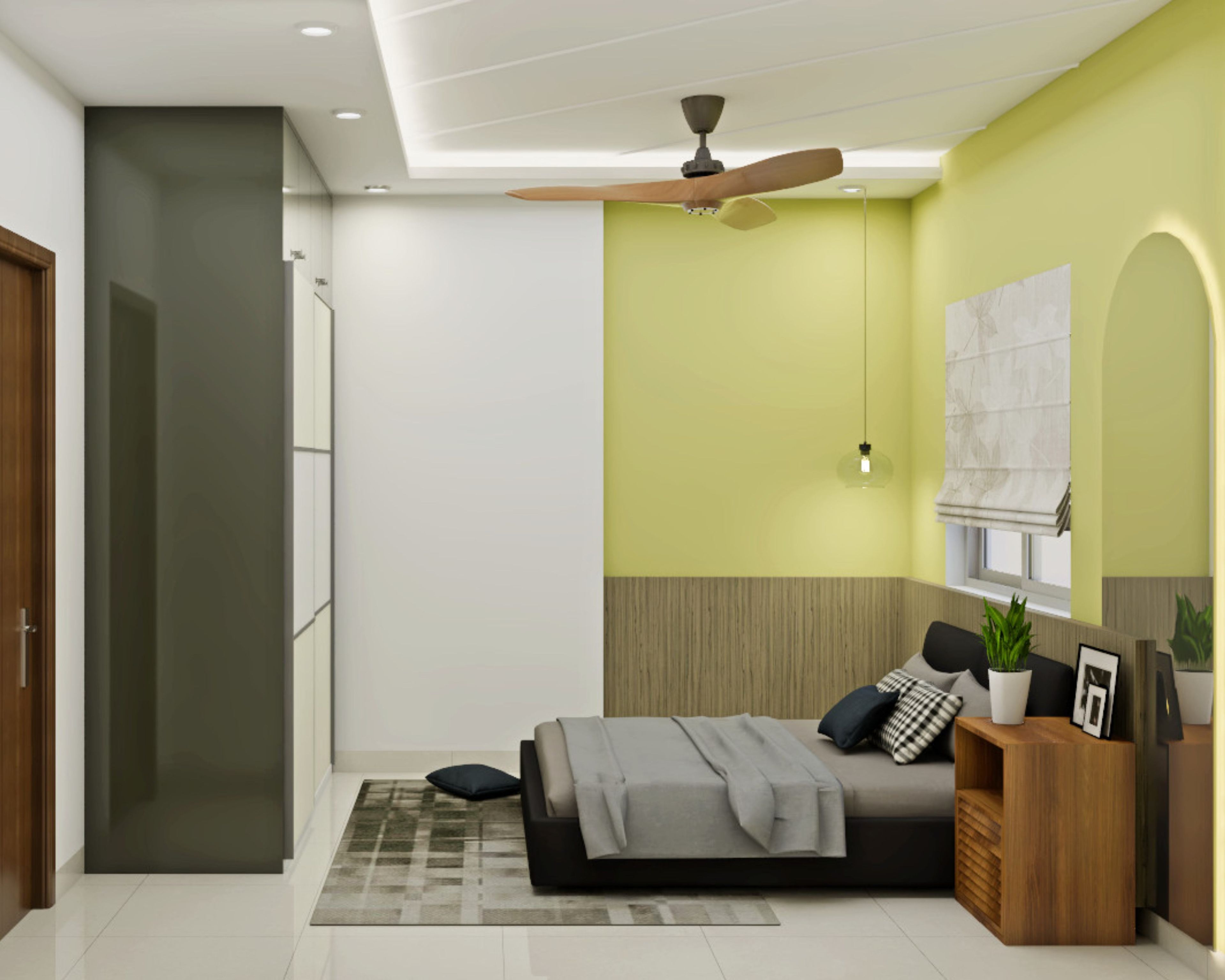 Spacious Master Bedroom Design With Lemon-Yellow Wall