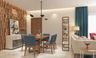 Dripping with sophistication, this living cum dining employs rich upholstery and clean lines. The shimmering chandeliers adds a dash of glitz and glamour.