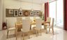 This lovely dining room is perfect for entertaining. The exquisite walnut and ivory dining table forms an attractive centerpiece.The dining chairs balance comfort with refined style.A vivid green on the seat upholstery and blinds adds a punch of colour.