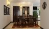 Brimming with panache, the smart choice of maintaining a neutral scheme with clean-lined furniture makes this dining room look spacious and feel spirited. Designed to impress, the basic contemporary Tarang dining table is a clever match to the Cornell dining chairs. A set of three pendant lights ensure a warm glow when fine dining.