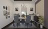 Featuring relaxed neutrals relieved with a bold dash of crimson, this classy dining room is the perfect space to entertain. The elegant Alfredo 6 seater dining table is paired with high backed Guinardo dining chairs. The Gomez majestic chest acts as a display and storage area for crockery, napkins, silverware and wine glasses. Damask patterned wall paneling and a soft rug complete the look.