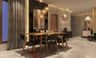 This spacious eating and dining area has artistic furnishings, and a clever color palette.   Crockery items and your favorite liquor can find shelter in the Travolta bar unit and Lumen sideboard. The simplicity of the Hugo chairs perfectly complement the fuss-free Ava dining table in this bright and fresh scheme.     Includes furniture, accessories, and soft furnishings, all subject to availability