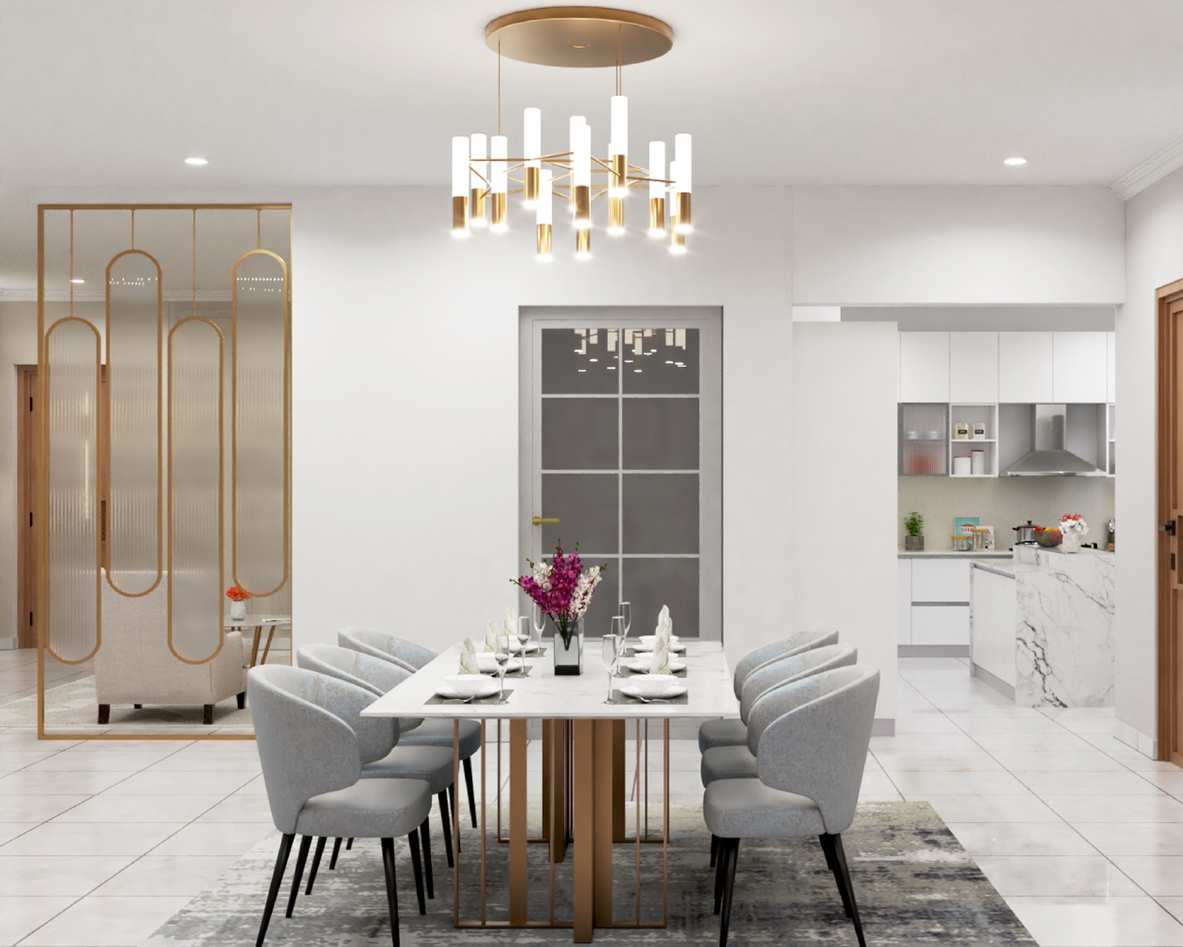 Room Highlights: This dining room offers plenty of space for entertainment and cosy family dining. Highlighted by a stunning chandelier, the dining room is also highly utilitarian