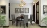 Muted saffron Lexington dining chairs, set around a streamlined Ashby table command your attention in this tastefully executed dining room. Two generously proportioned cabinets placed in the corner hold crockeries and stemware with ease. A bold wall painting complements the chairs and brings alive the neutral room.