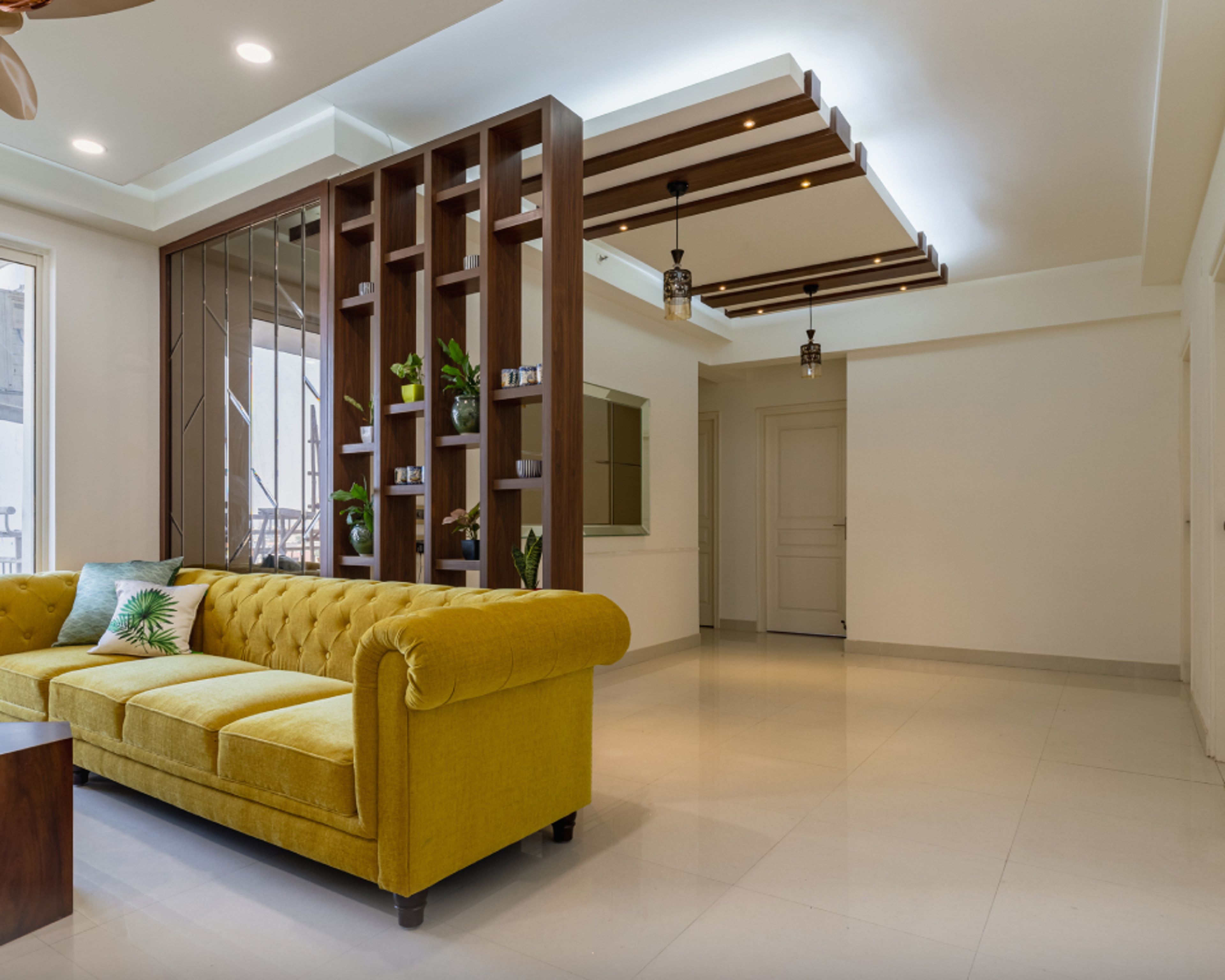 • Beige flooring design adds a soothing touch to the space