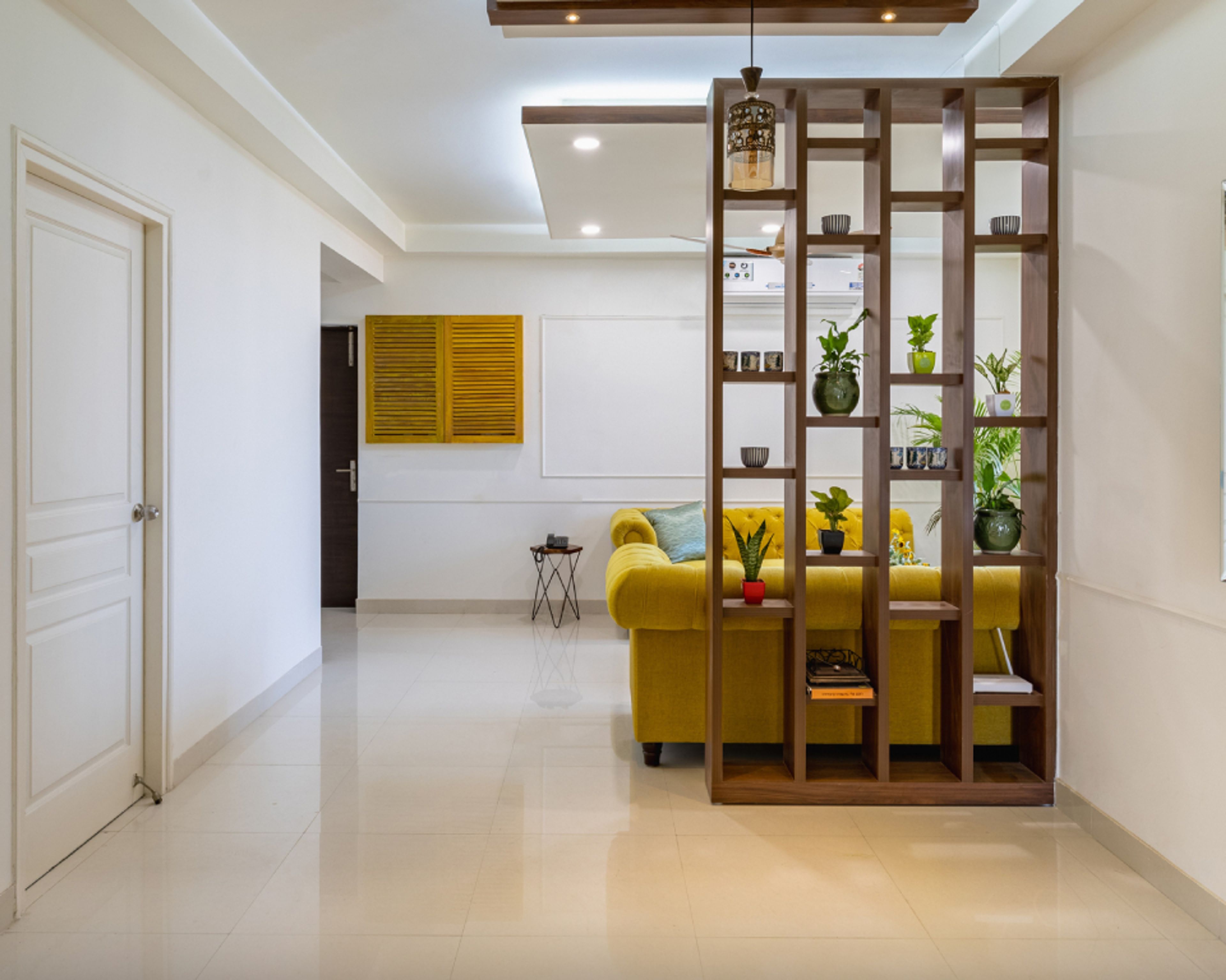 • Light-coloured flooring adds depth to the space, making it appear larger and more spacious