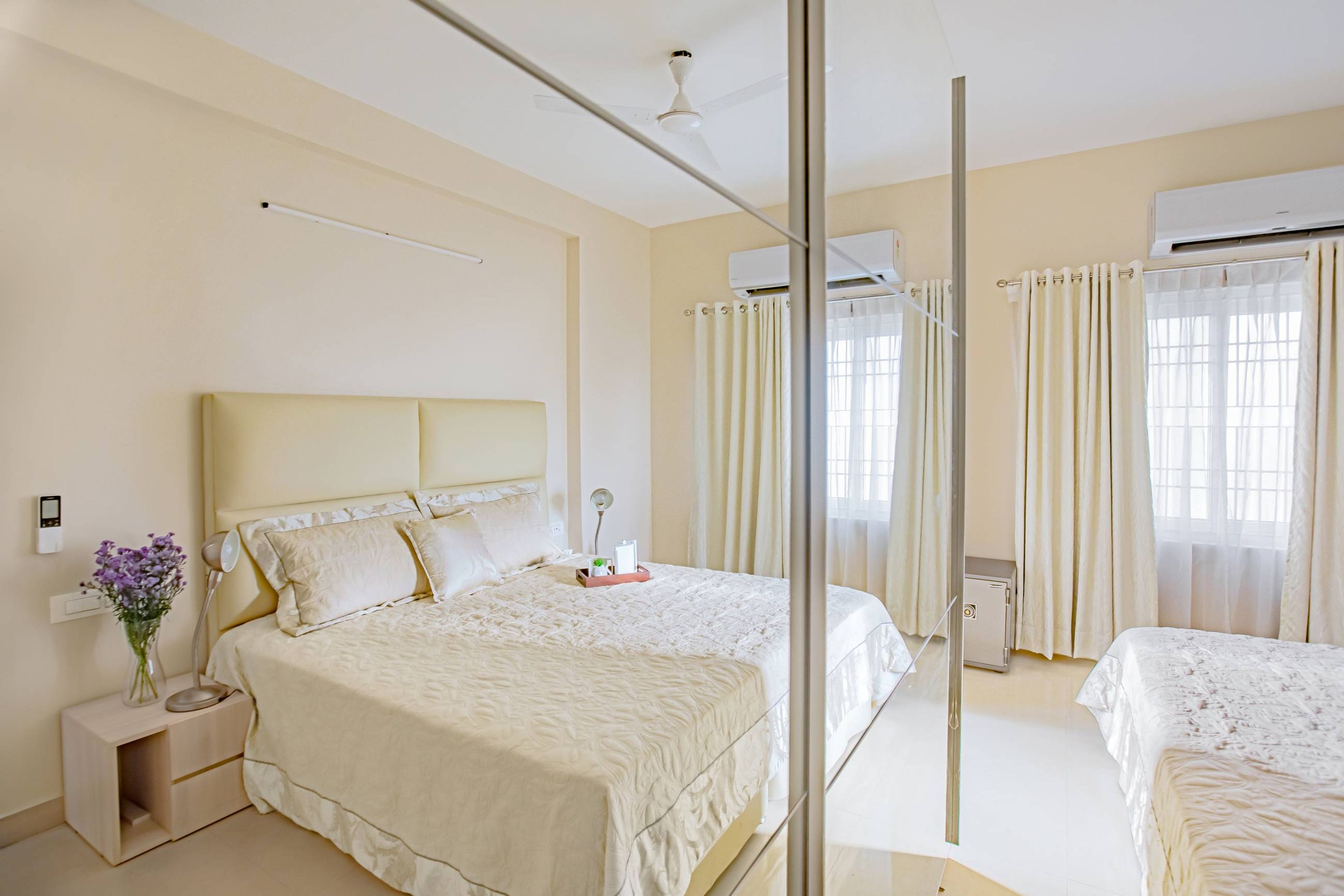 • Room Highlights: Linen-white tones of the room and the mirrored wardrobe