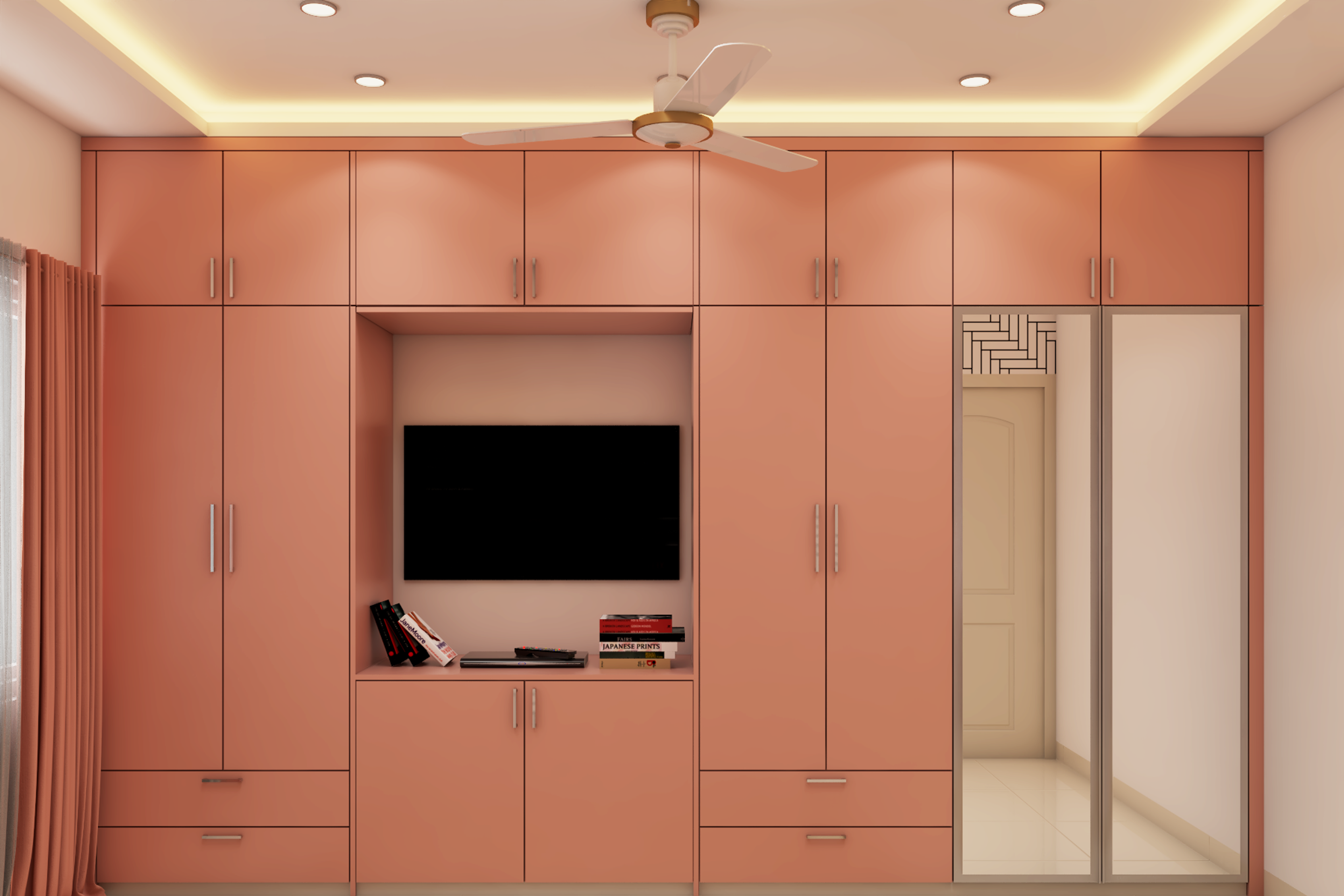 Monochromatic Peach Modern Guest Bedroom Design With Wardrobe