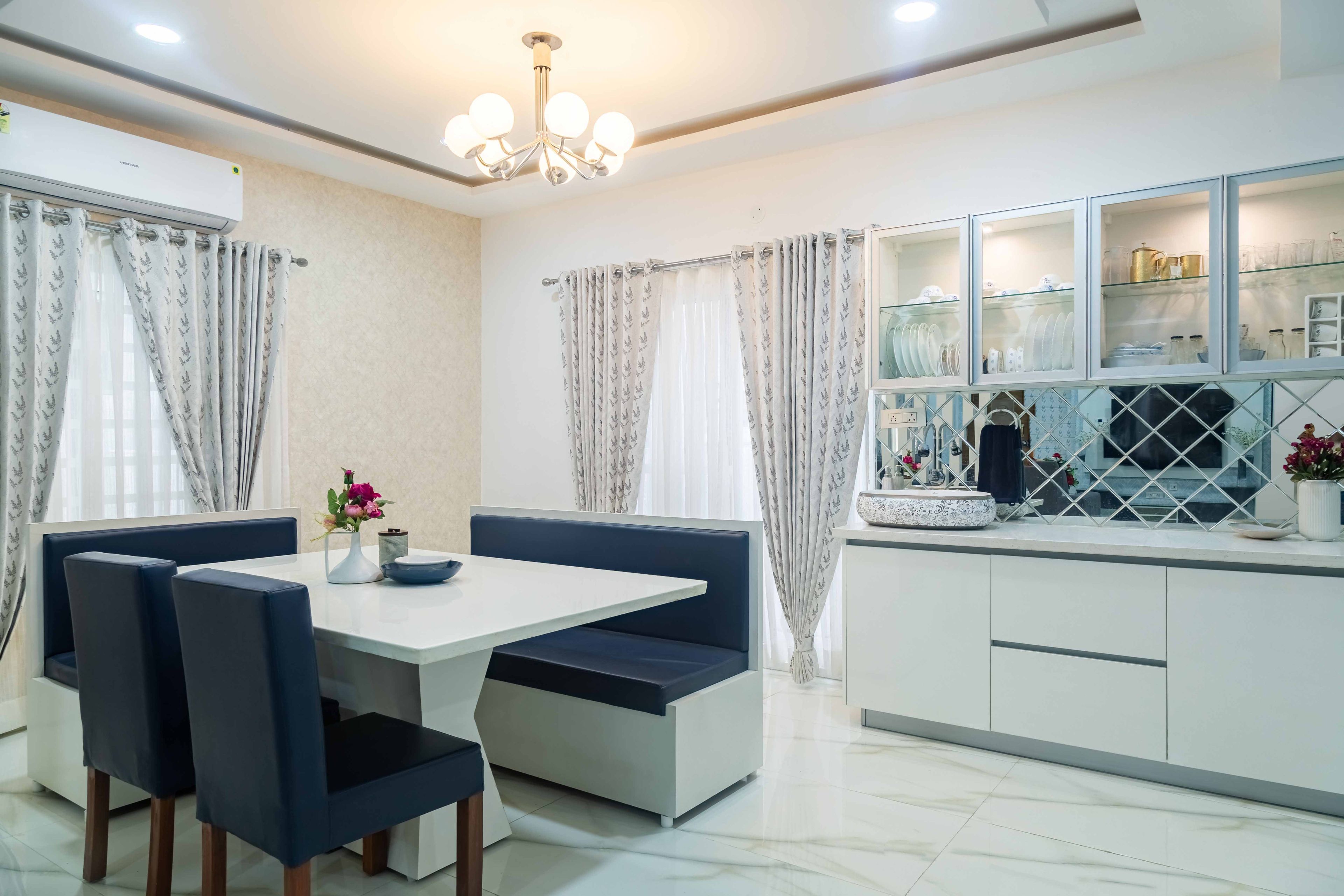 Elevate your living space to new heights with our exquisite 3BHK Villa Interior Design package specially crafted for Hyderabad homes. Step into a world of timeless elegance and unmatched comfort as we blend contemporary aesthetics with the charm of traditional Indian elements. Designed by our team of expert interior designers, this package brings together the perfect fusion of style, functionality, and personalization. From the moment you enter, you'll be captivated by the seamless flow of spaces, thoughtful layouts, and meticulous attention to detail. The living room serves as a grand showcase, where plush seating arrangements invite you to unwind and entertain guests in style. The tastefully curated furniture, elegant lighting fixtures, and carefully chosen accessories create an atmosphere of sophistication and warmth. The bedrooms are sanctuaries of relaxation and tranquility, featuring bespoke furniture, cozy bedding, and soothing color palettes. Our designers have taken care of every aspect, ensuring that each room exudes its own unique personality while maintaining a cohesive design language throughout the villa. The kitchen is a chef's delight, equipped with state-of-the-art appliances, ample storage solutions, and sleek countertops. It seamlessly combines functionality with aesthetics, making cooking a pleasure and entertaining a breeze.