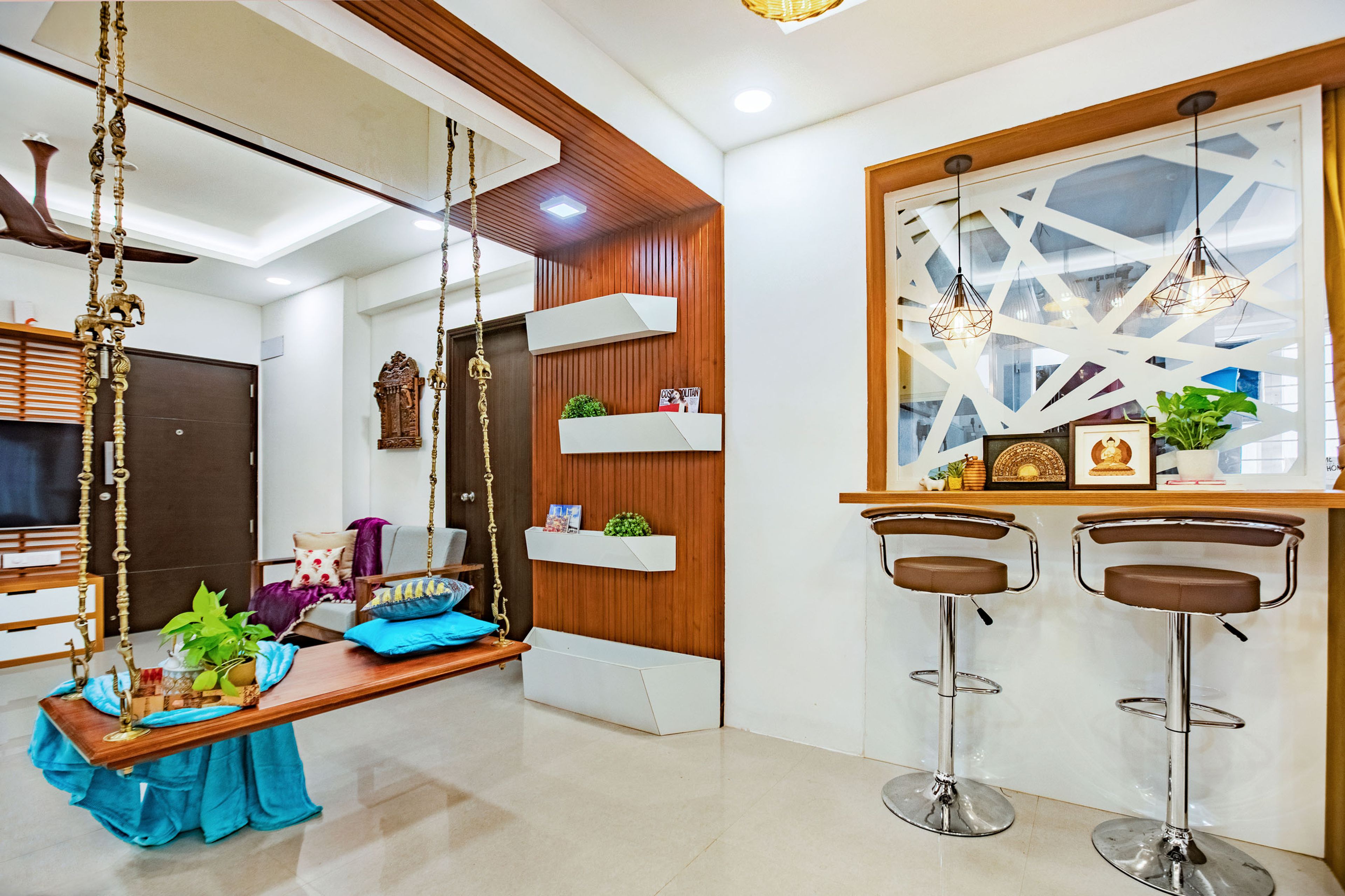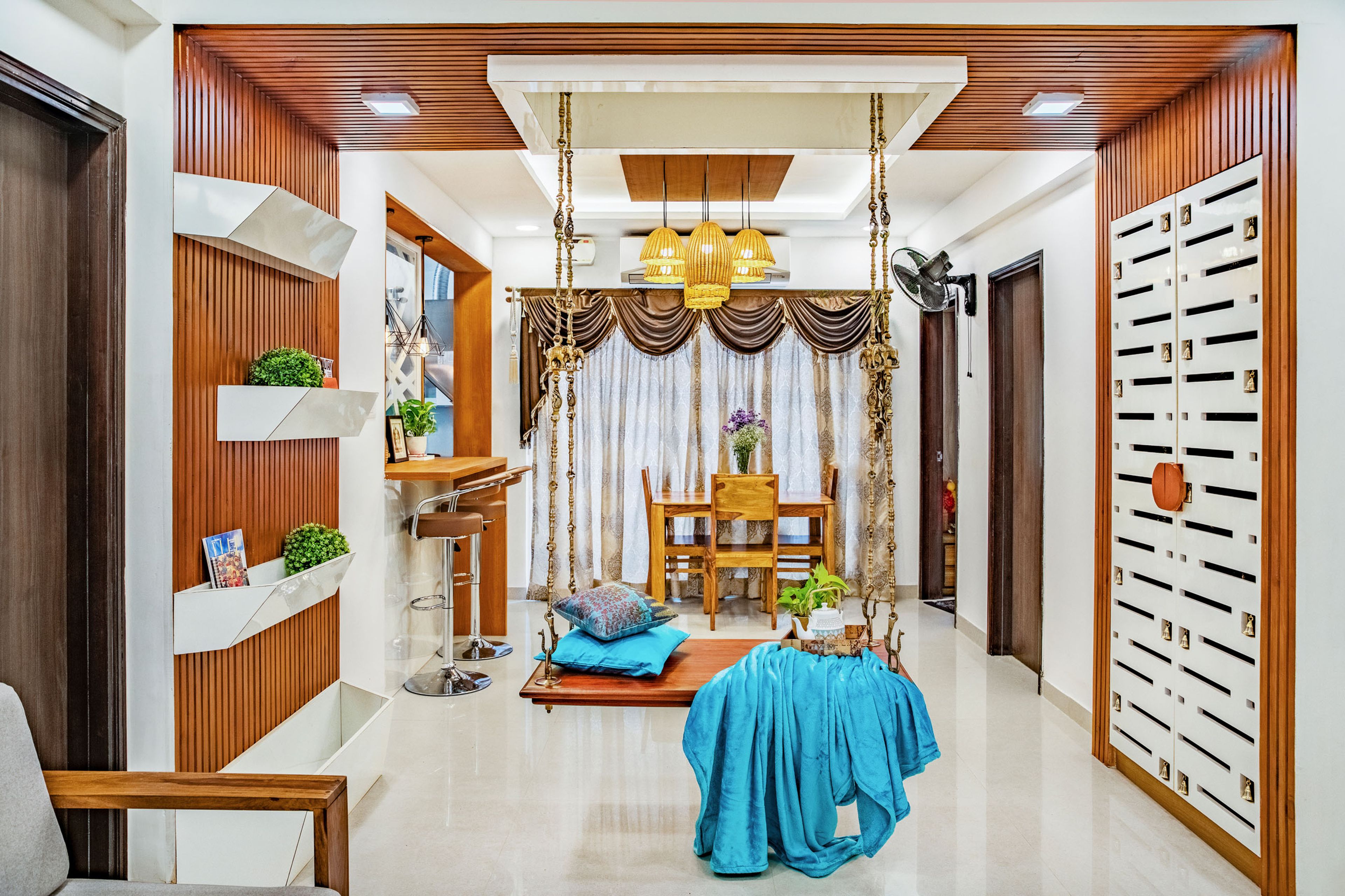 Pro Tip: Opt for a wooden false ceiling, a wooden wardrobe or a wooden mandir design, to add some timeless elegance to your spaces