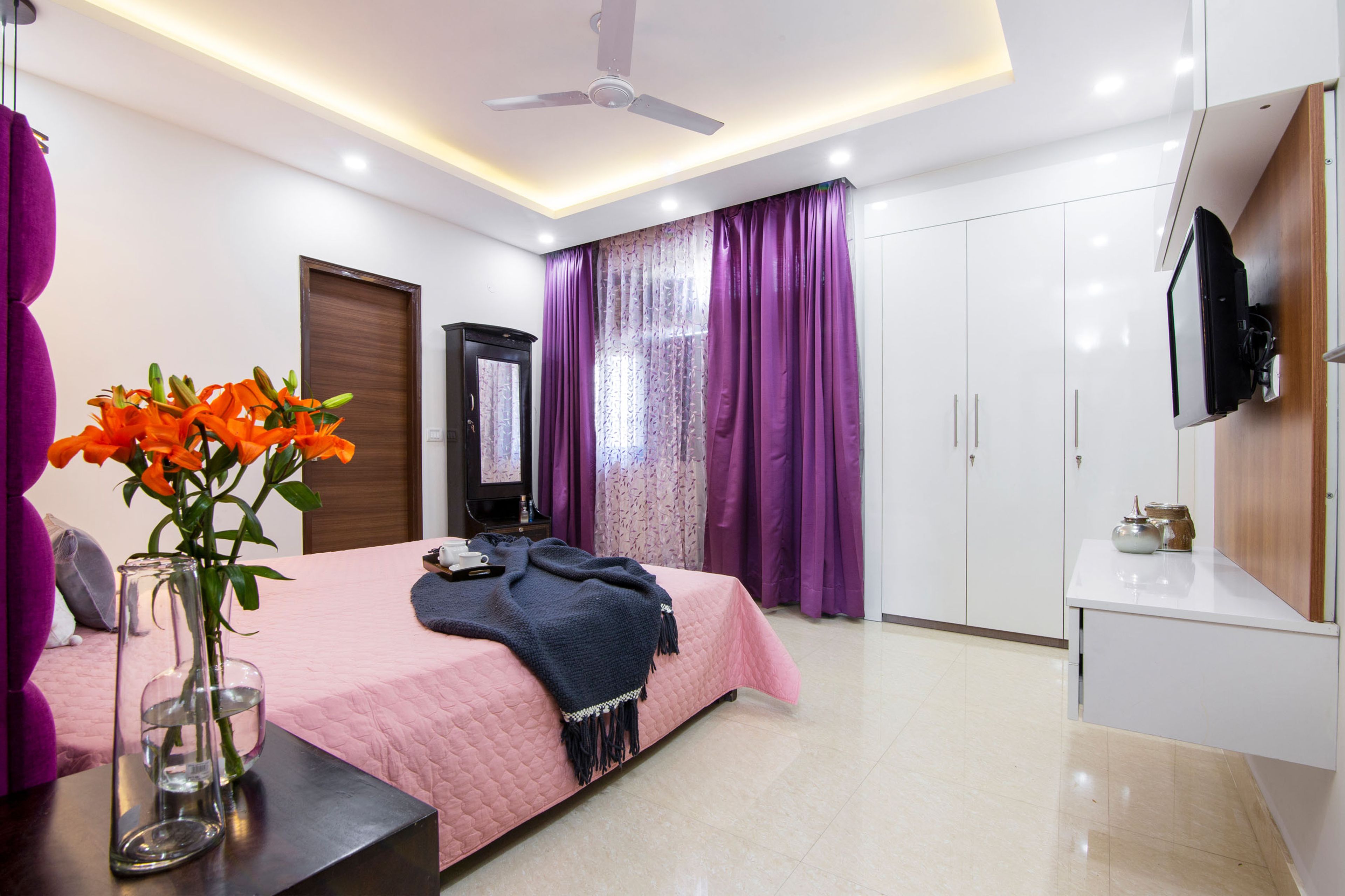 - Master Bedroom: White swing wardrobe