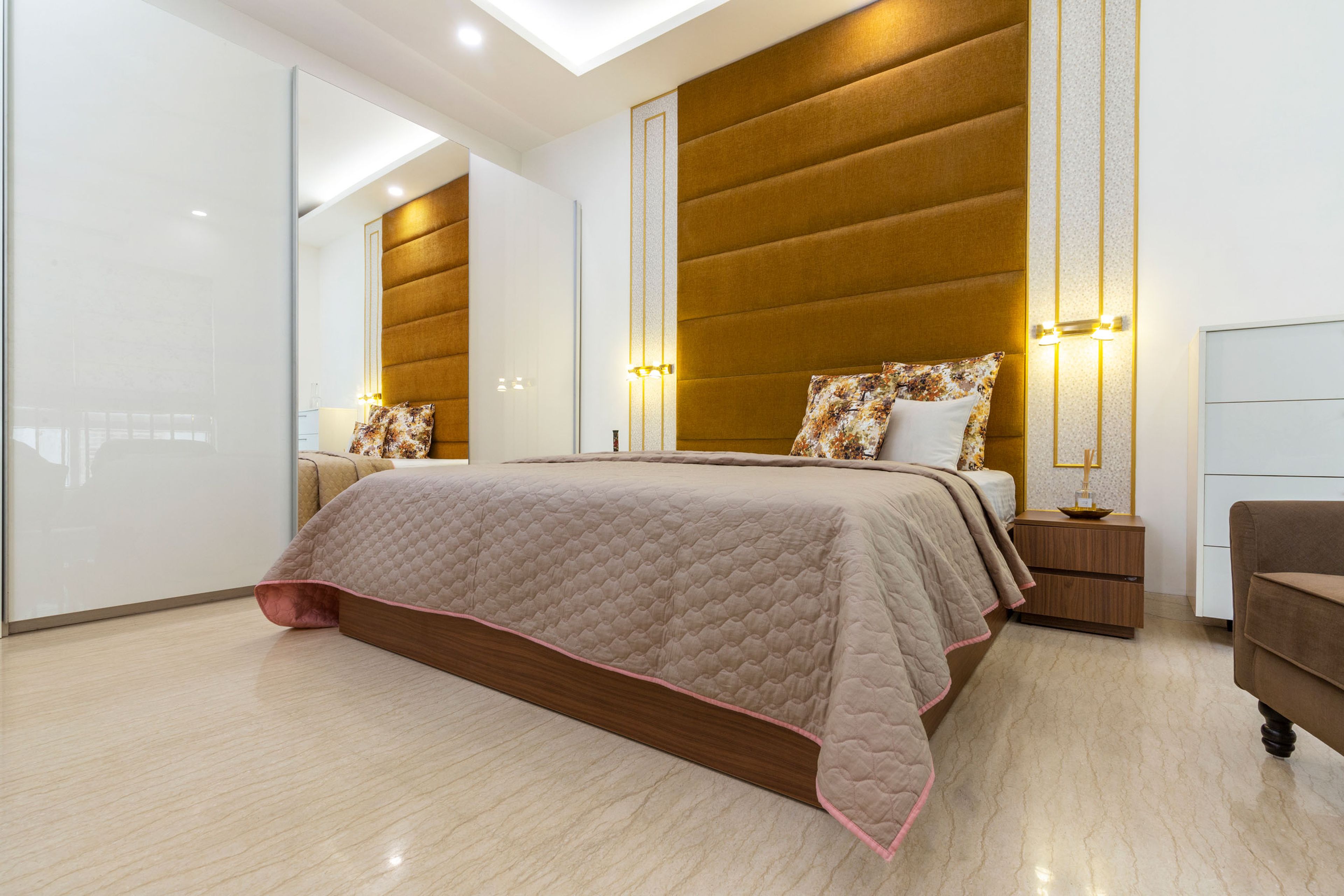 - Guest Bedroom: White mirrored sliding wardrobe