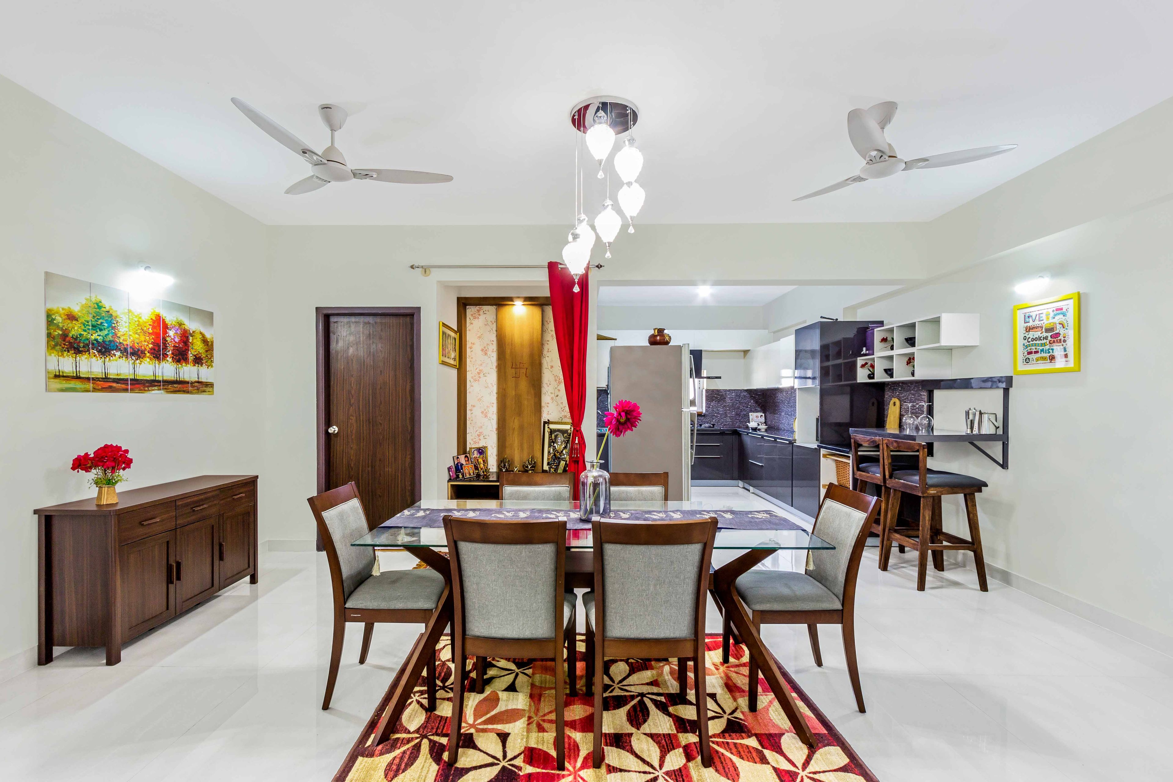 Step into this stylishly curated 3-BHK flat where modern elegance meets functionality seamlessly. The U-shaped kitchen stands out with its sleek and functional design, adorned in contrasting dark grey and white hues, creating a timeless culinary space. In the master bedroom, a 2-door sliding wardrobe with loft units adds practicality, while the kids' bedroom features a convenient 2-door swing wardrobe. Discover the allure of the kitchen's sophisticated contrast, blending dark and light tones harmoniously, amplifying space and adding depth. Follow the pro tip's guidance to optimize the color scheme, creating a sophisticated yet inviting ambiance within the culinary realm.