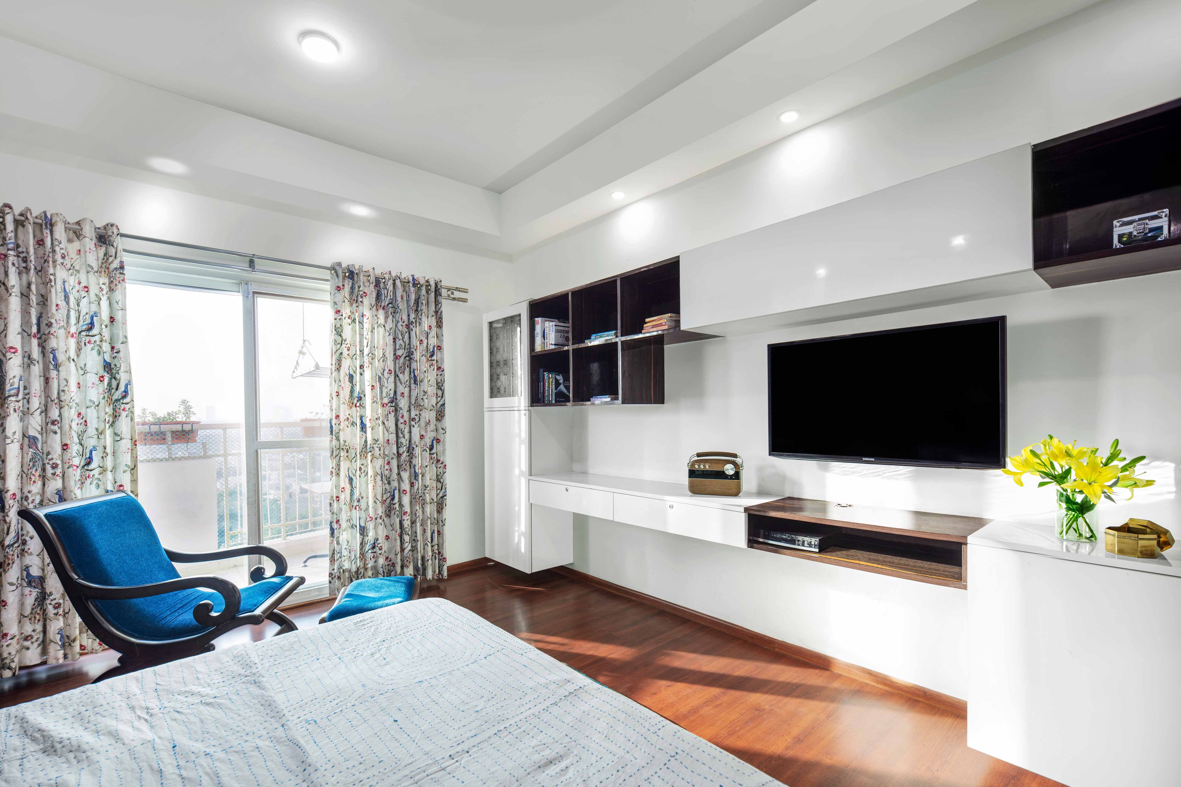 What We Love: The modular TV units in the living room and the bedroom space. The minimalistic designs add an elegant aesthetic to the house.
