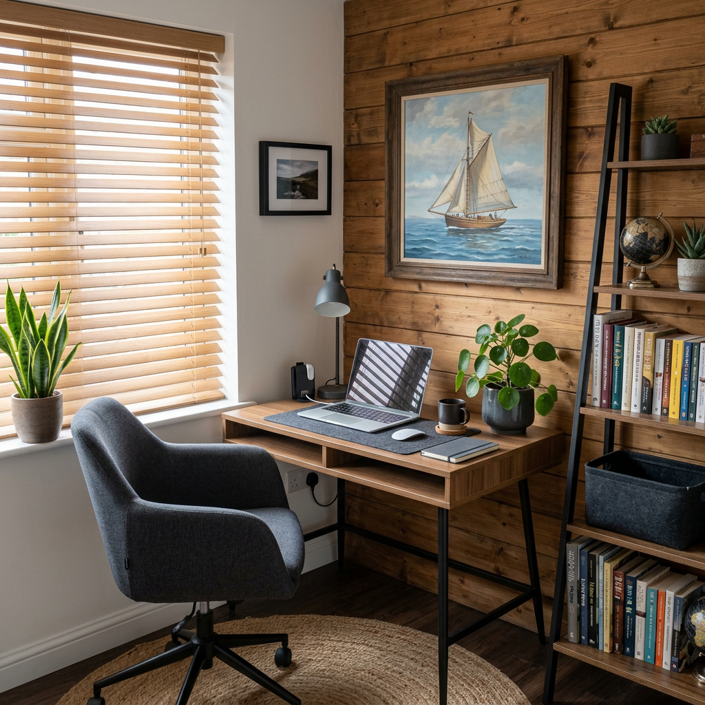 Once you have set the plan of your home office in place, there are limitless décor items that you can incorporate to make the place feel more like home and get your creative juices flowing. These can be things you can keep on your work desk like lamps, desk plants, scented candles, and more. Your home office interior design should be spacious enough so that you can move around freely and comfortably fit your desk and chair. Selecting the right desk and chair for your office room is crucial. Both must be ergonomically designed to ensure your posture is right and you are not putting additional stress on your body.