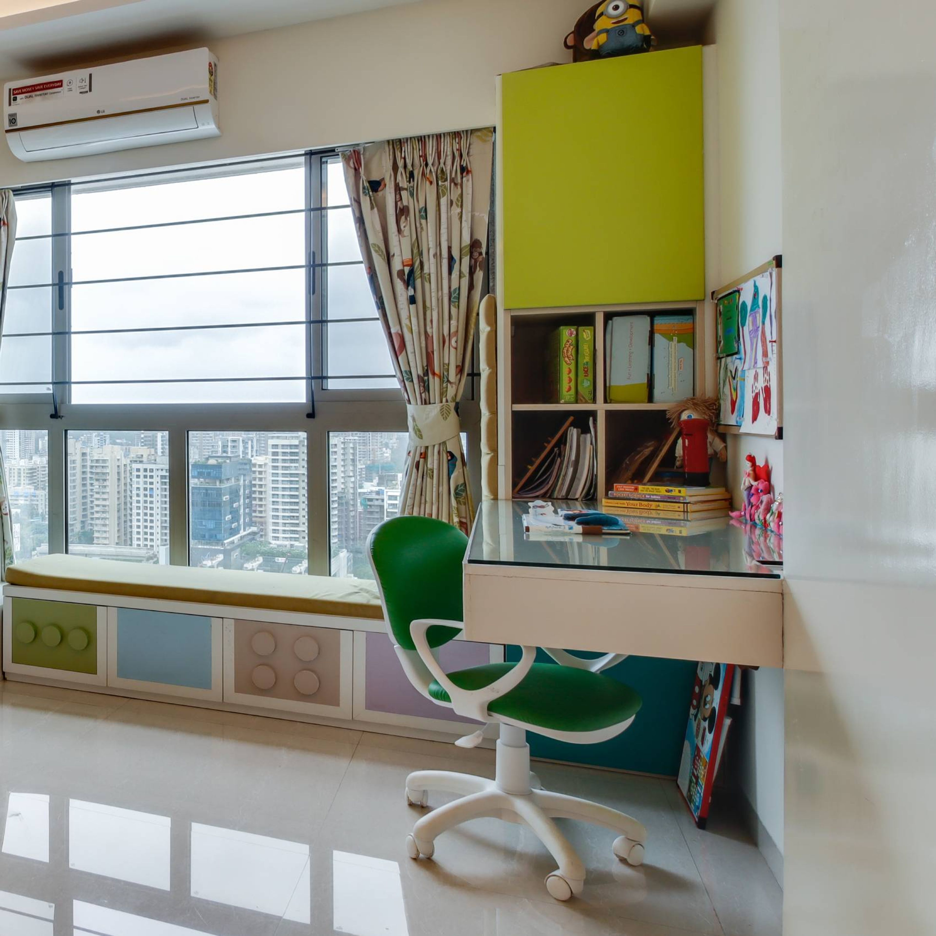 • Cabinet shutters: Study table and wall storage in laminate