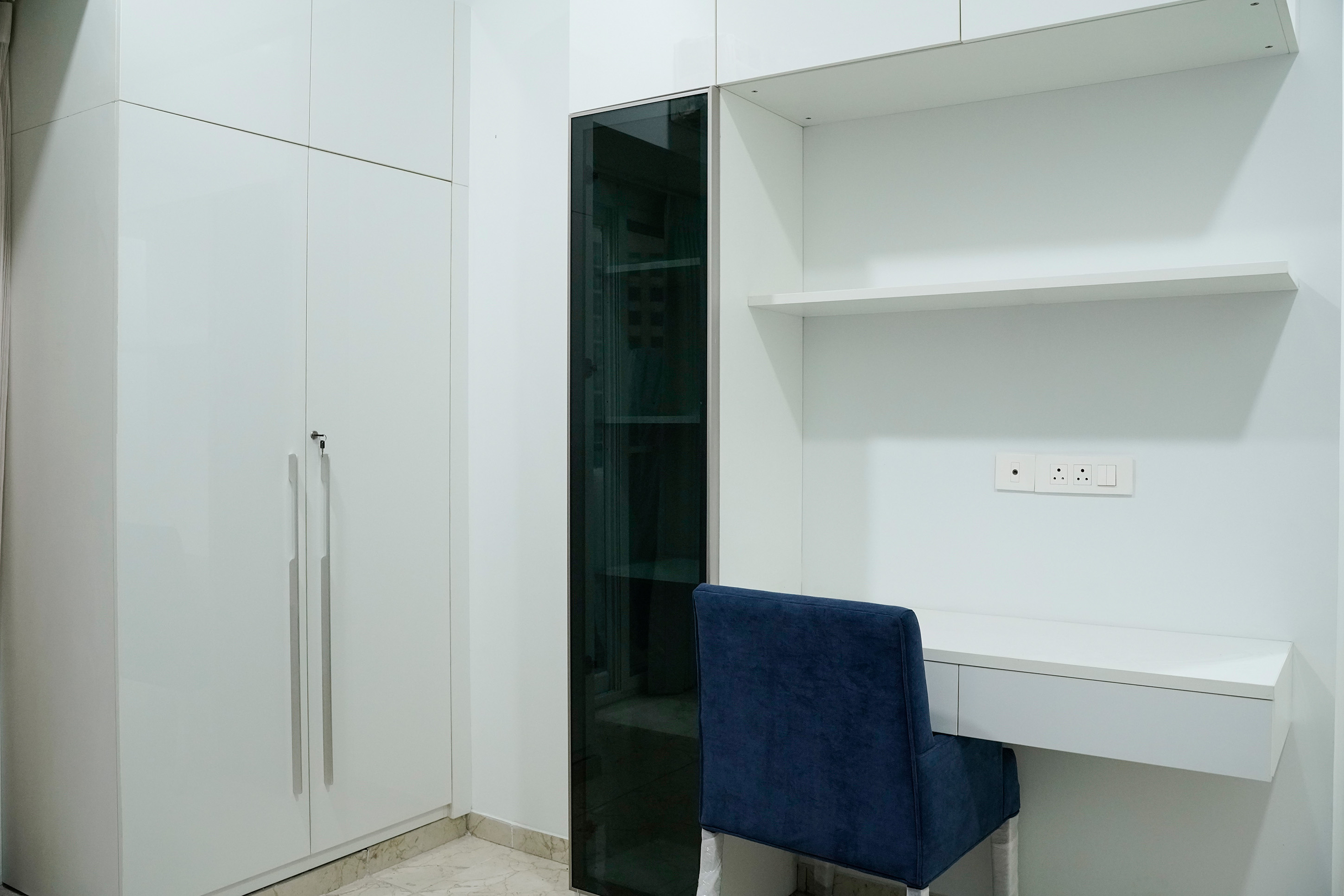 Having a home office design optimised for your comfort will allow you to work for longer hours without getting fatigued. Some ergonomics you can consider while setting up your office room interior design are: Make sure that your monitor is placed exactly at your eye level and the keyboard is exactly in front of the monitor to avoid neck pain. The size of the desk and chair should be appropriate so that your legs fit comfortably below the desk. The chair should allow your feet to touch the floor while you are seated to avoid your legs from dangling. Taking care of your eyes is also important. This can be done by periodically resting your eyes by looking at objects other than your computer screen and avoiding a bright glare like sunshine from behind your keyboard.