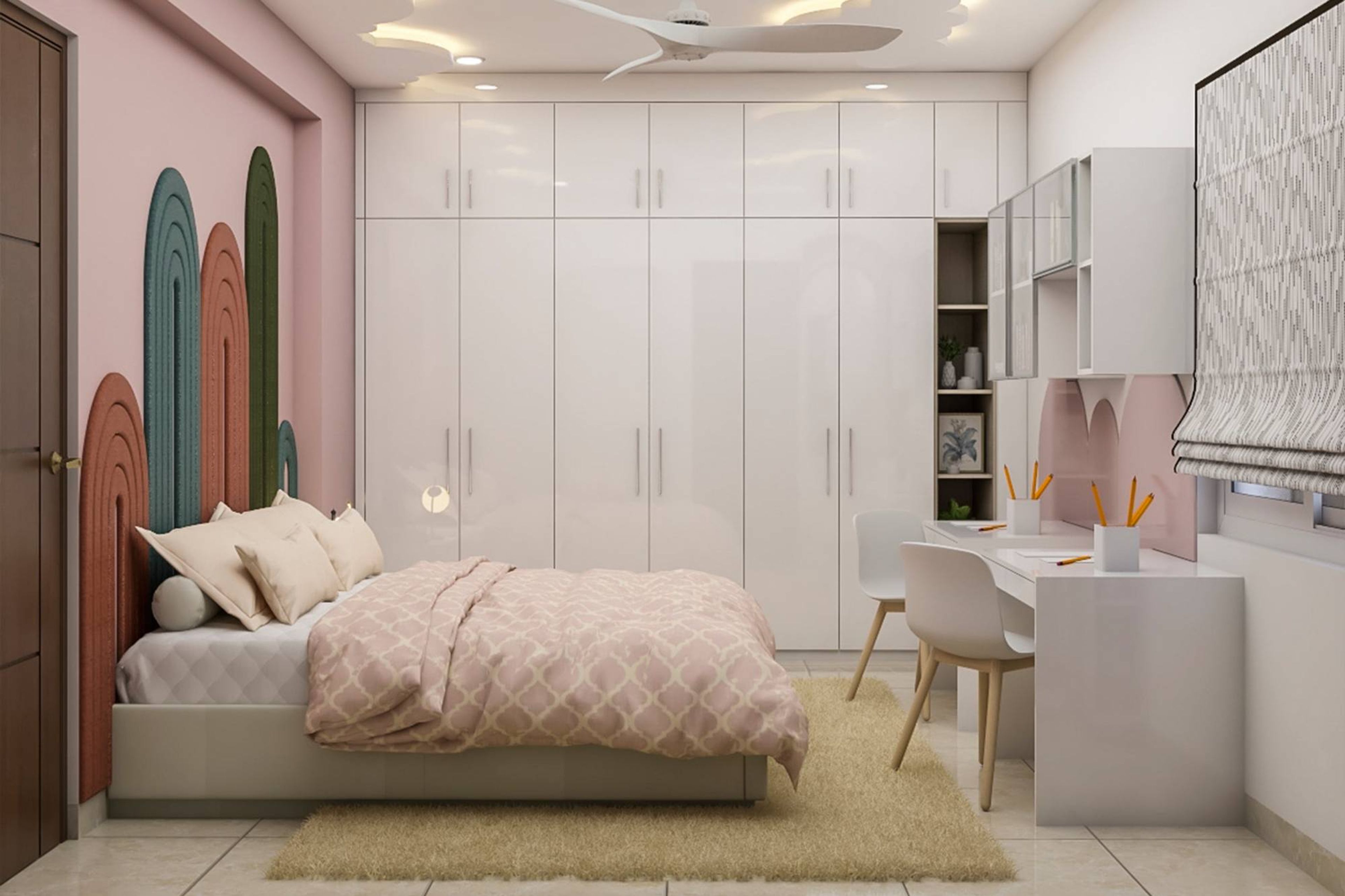 Room Highlights: The running pink and white theme is complemented by the cloud POP ceiling design