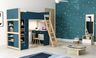 The balanced use of neutral colours and pops of sunny yellow makes this kids bedroom covet-worthy. Functional without compromising on style, the two-level bunk bed features high safety panels and an elegant wooden frame and ladder. A similar-toned wardrobe, desk and vanity unit tie the palette together.