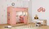 Minimal yet fully functional, this kids bedroom is for the ones who love their hours of fun and frolic. The bunk bed is practical in its design, with built-in bookshelves and an attached ergonomic desk. Drawers and a hinged-door cupboard complete the furniture setup while the teepee and area rug add warmth.