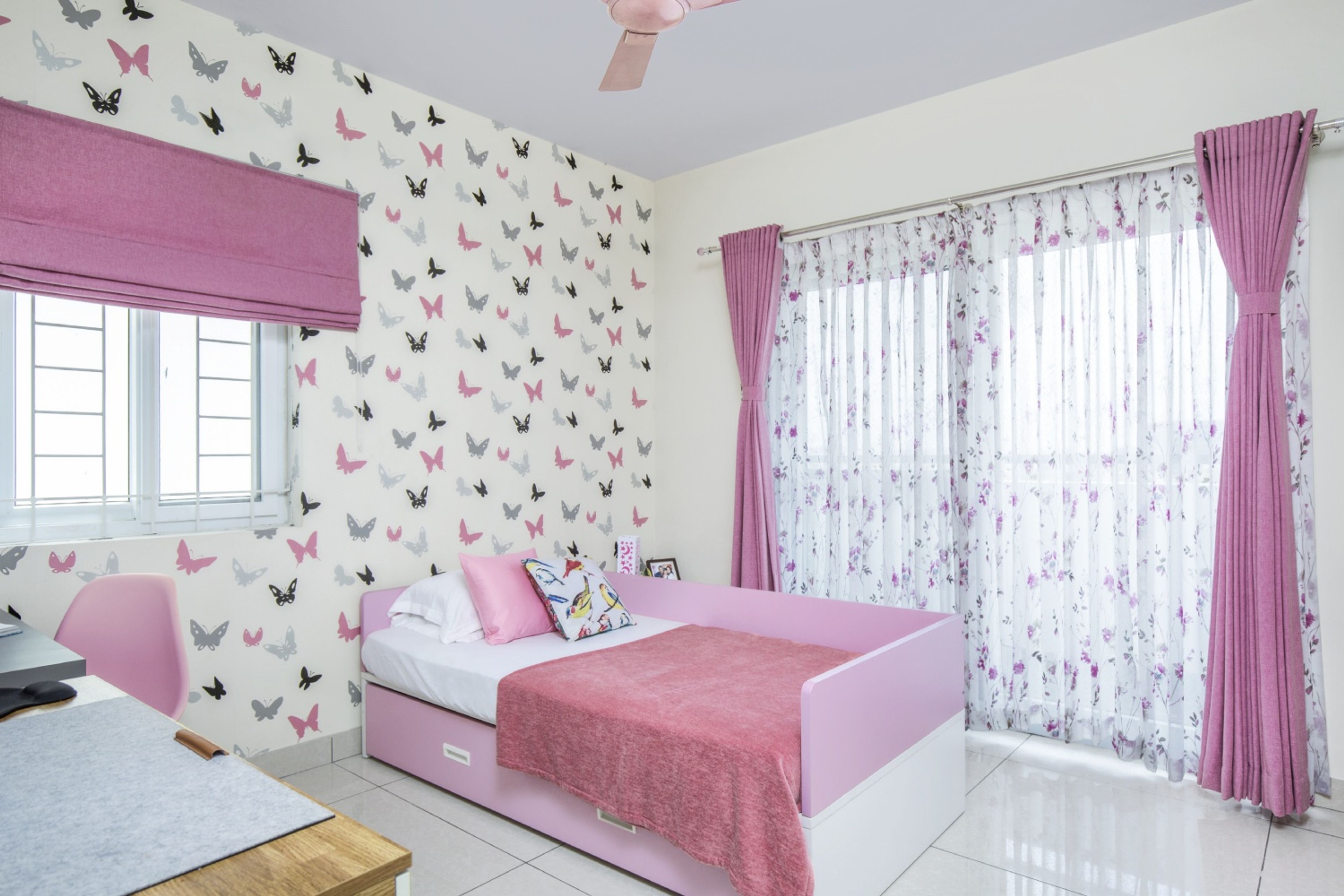 • Wall Features: Butterfly themed wallpaper