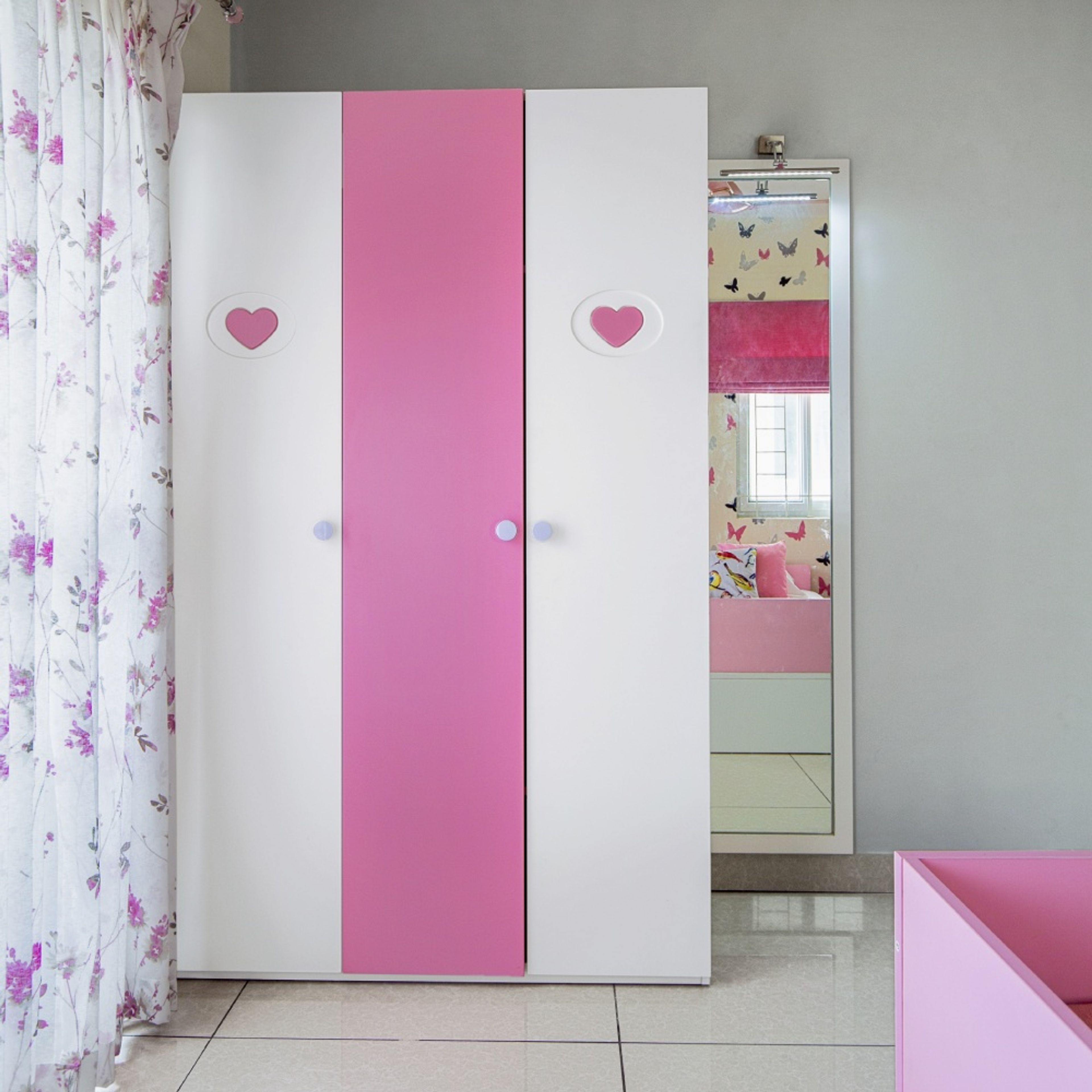 1.Pink and white swing shutter wardrobe unit