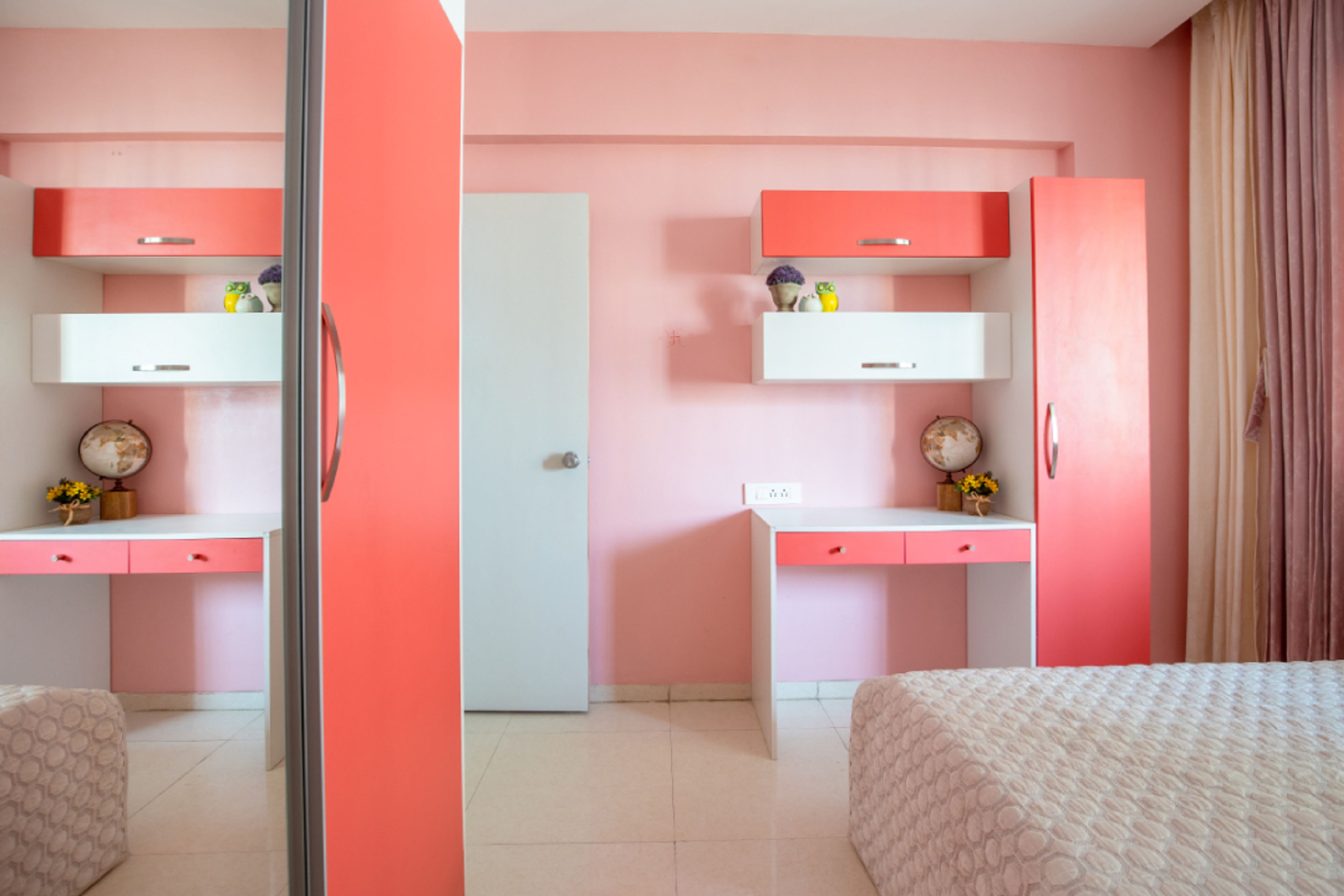 Yes — Girls bedroom designs work beautifully in small spaces when you use light, pastel color palettes, multifunctional furniture, and built-in wardrobes. Modular layouts ensure ample storage for clothes and study essentials without making the room feel cluttered or heavy.