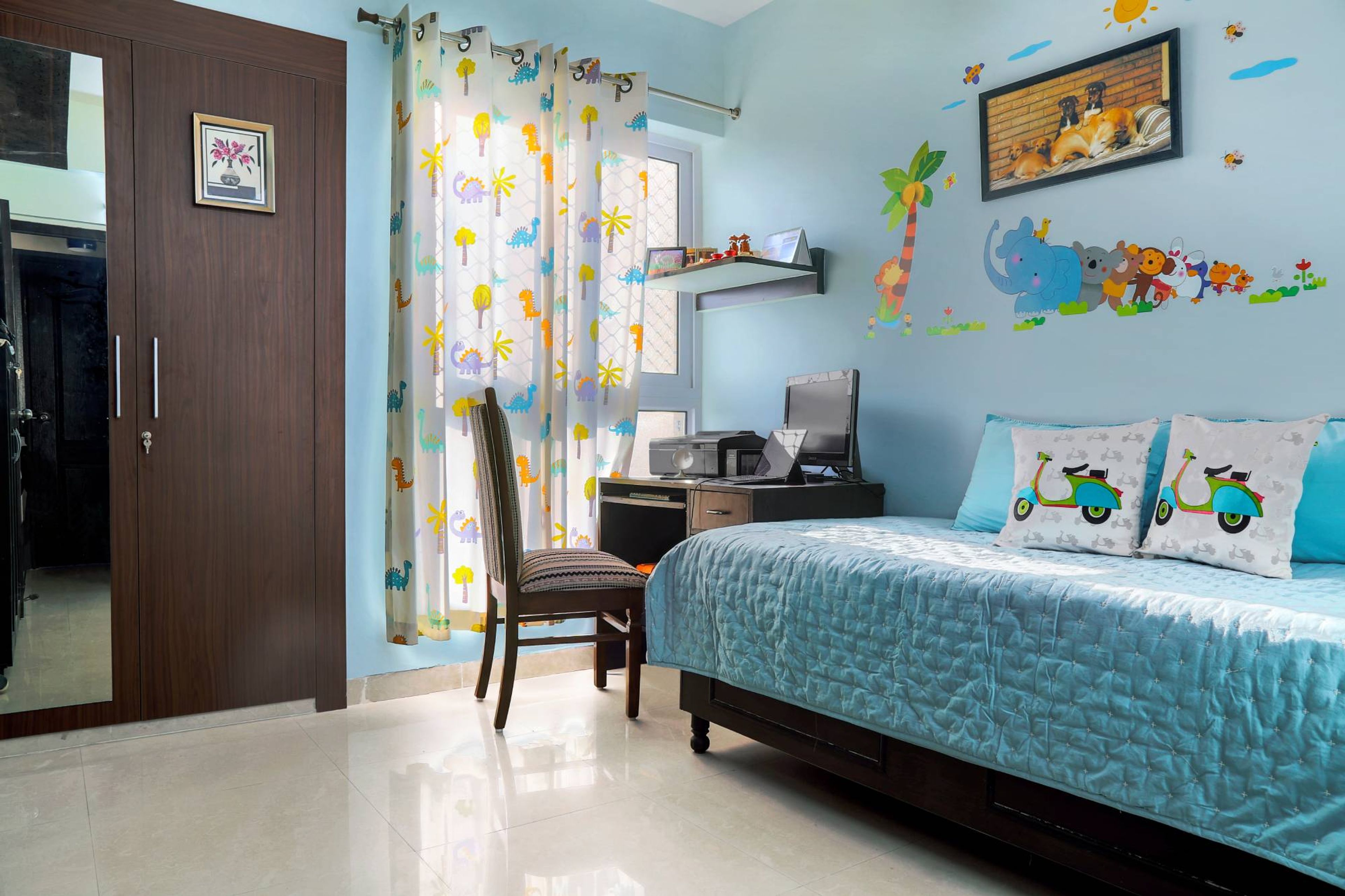 • Wall Features: Kid's room comes with sky blue wall paint and cartoon stickers