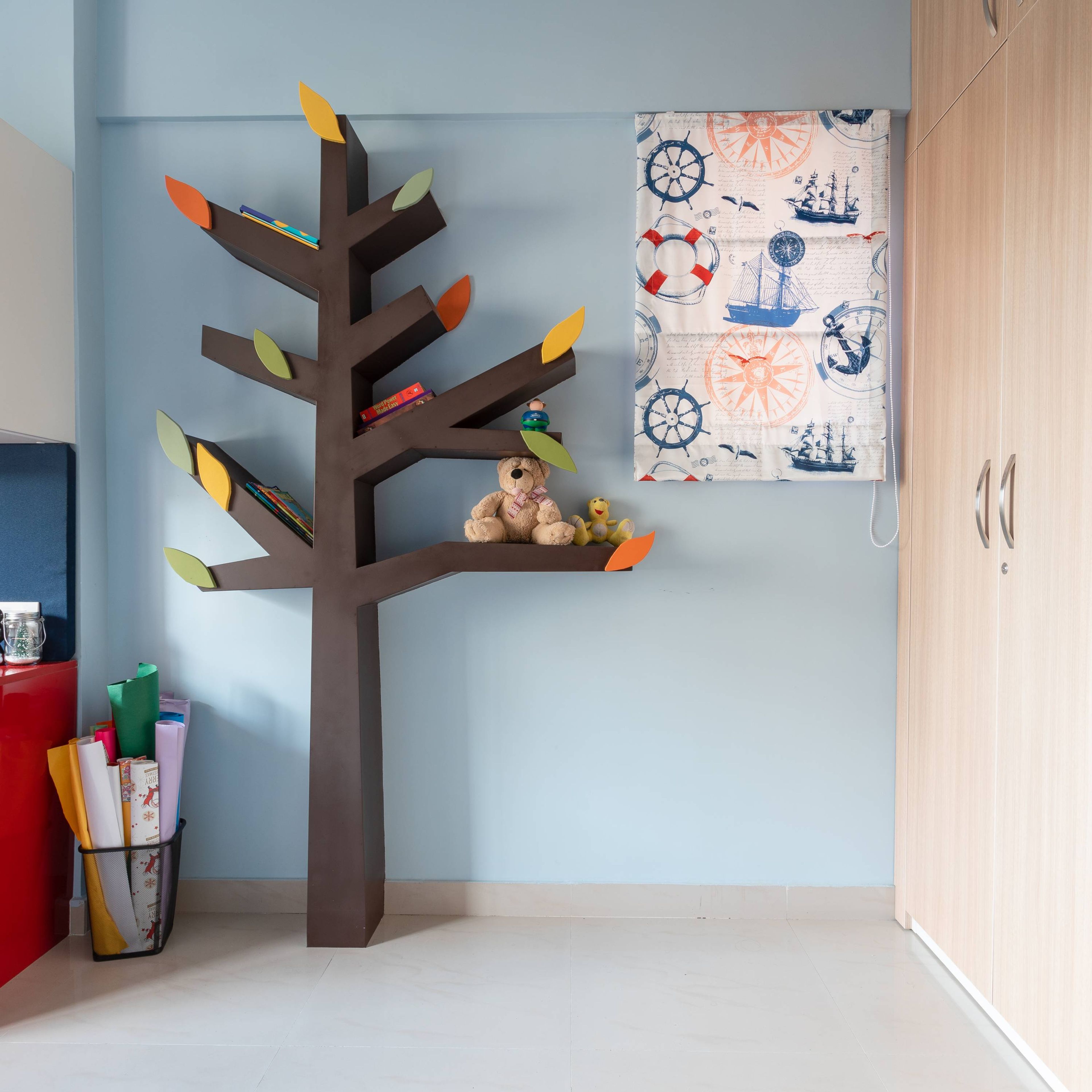 • Wall Features: Navy blue wall paint adds a classy touch to the kid's room