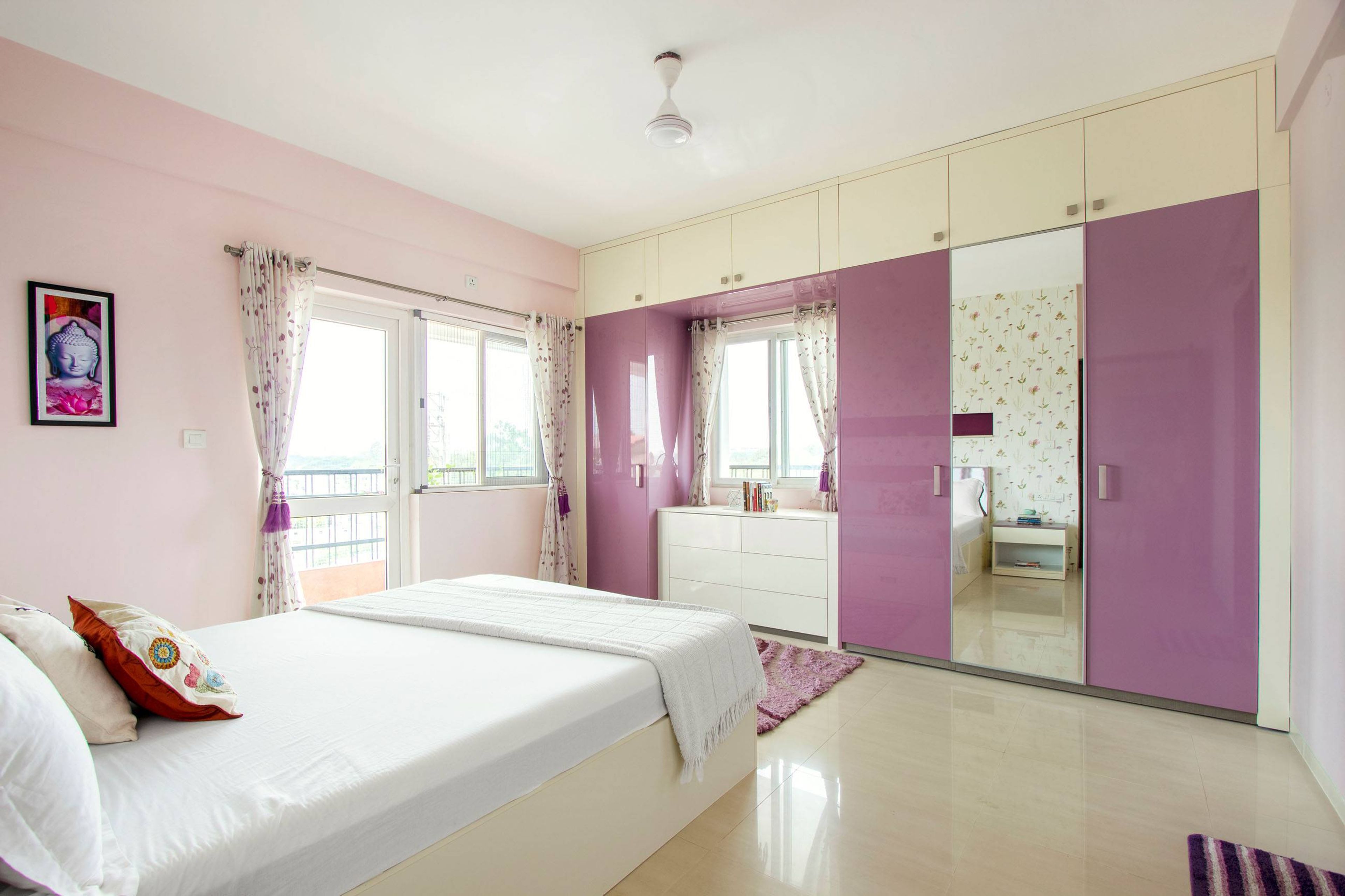 • Storage Features: Light purple wardrobe