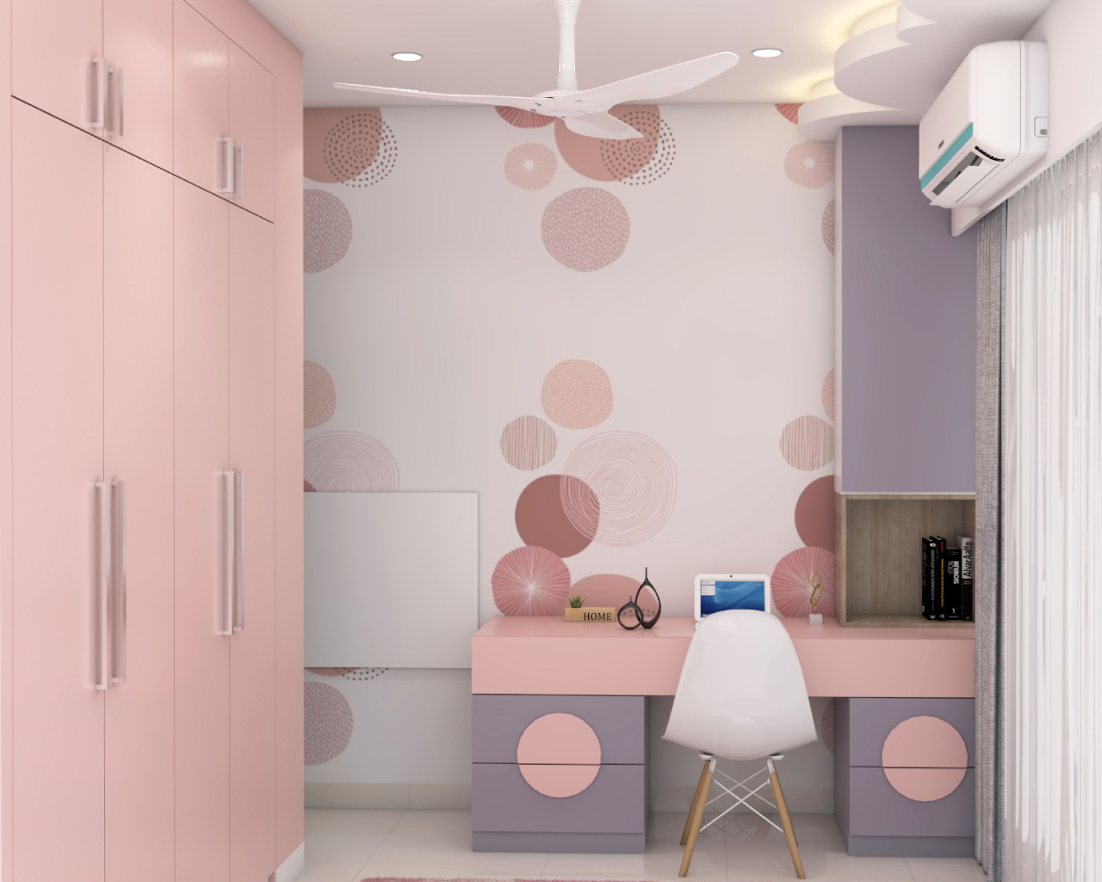 Yes, Livspace allows you to integrate a study desk, play nook, or reading corner into Modern Pink Kids Room Design For Girls With Shell-Shaped Headboard for added functionality. Our modular layouts ensure that every inch of your child’s room is optimized for learning, playing, and resting comfortably.