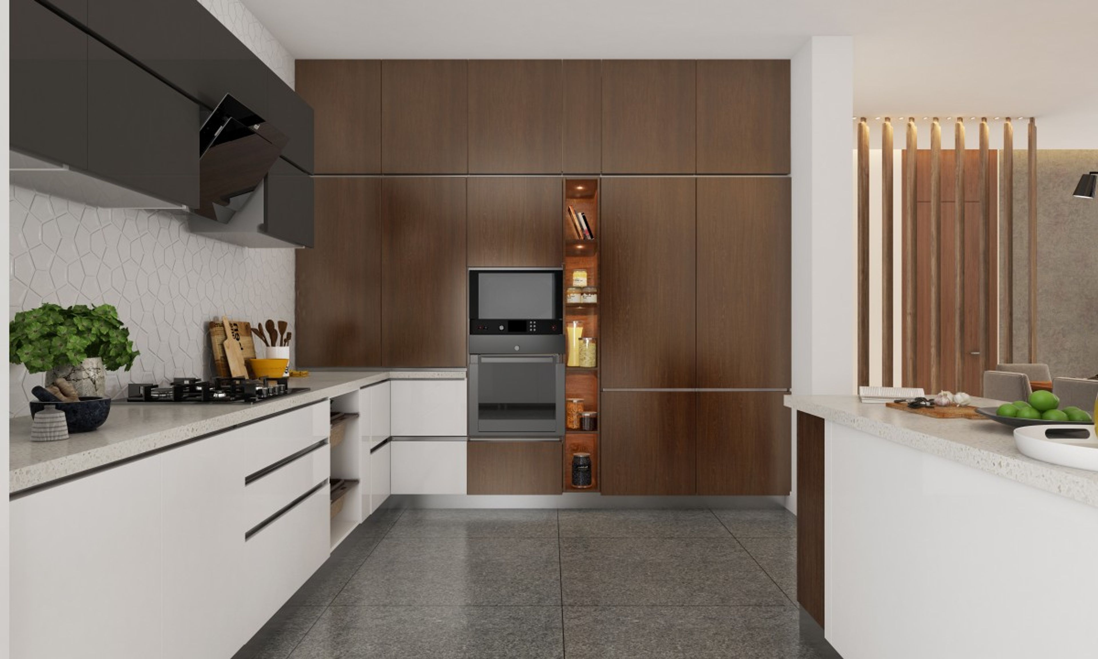 An L-shaped kitchen layout is ideal for homeowners who want an efficient workflow and maximum storage in a compact footprint. It provides an ergonomic design where the cooking, washing, and preparation zones are placed along adjacent walls to enhance functionality. Depending on your space, this layout can also be customized with modular cabinets, built-in appliances, and smart storage solutions to suit modern Indian homes.