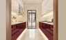 The Agnes features a clean design that offers ample moving and working space. The biscotti toned backsplash pops against the wood hued and greige shutters.   Features an easy-to-clean countertop and backsplash Cooktop and chimney are installed keeping in mind the ergonomics of the kitchen work triangle