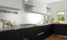 This sleek kitchen has all work-tops, storage and equipment built in along two side walls making for a highly efficient work triangle with plenty natural lighting from the glazed door. Cutting edge appliances like the Kaff built in oven, 4 burner hob and chimney combined with Hafele pull outs, cutlery inserts, sink modules and overhead storage systems make for a clutter free cooking experience.