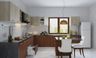 A kitchen full of natural light, Ether features the perfect kitchen triangle between cooking, cleaning areas and the refrigerator. A combination of closed cabinets and open shelving maintains the visual lightness, while solving both storage and display needs.