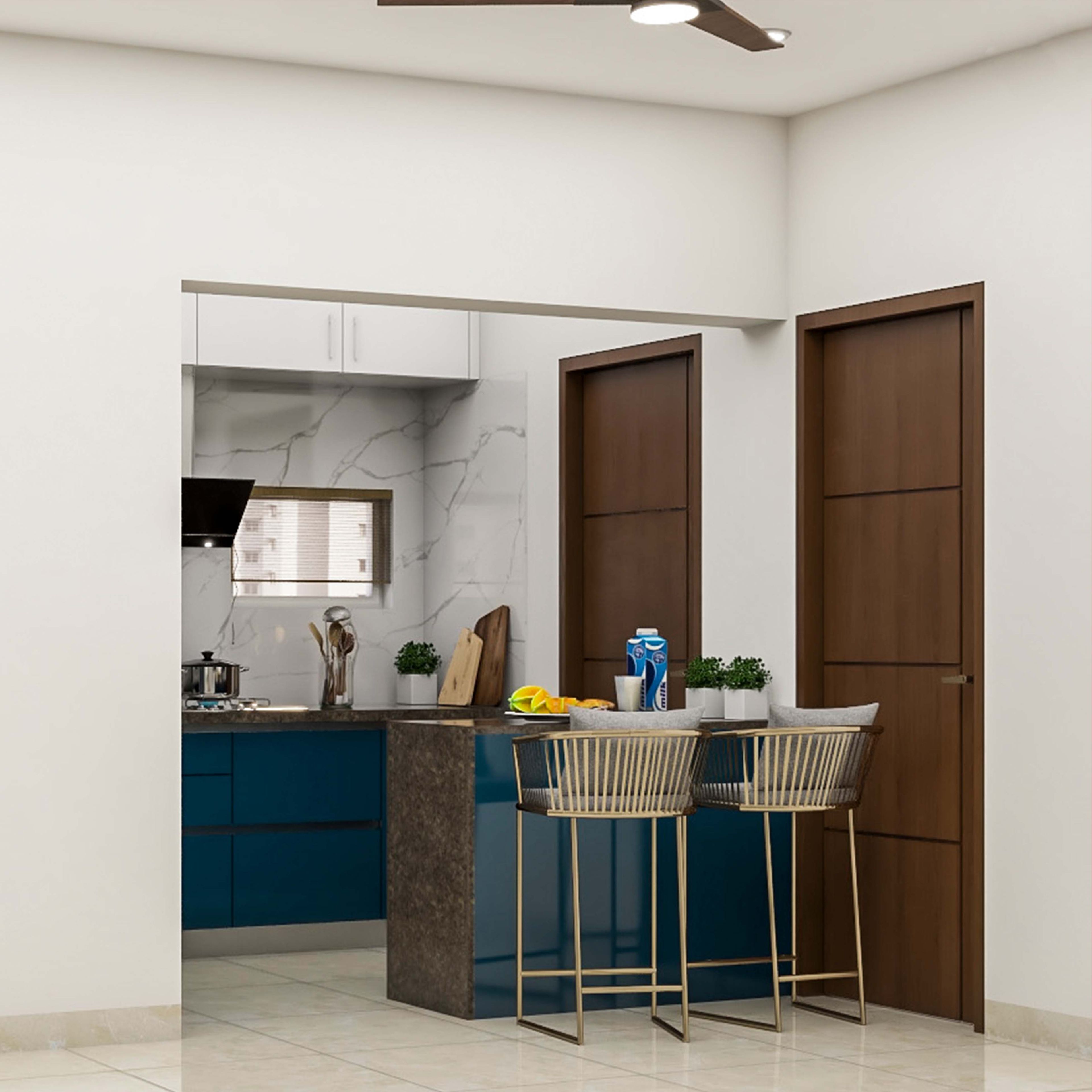 1. Kitchen has a breakfast counter with storage space