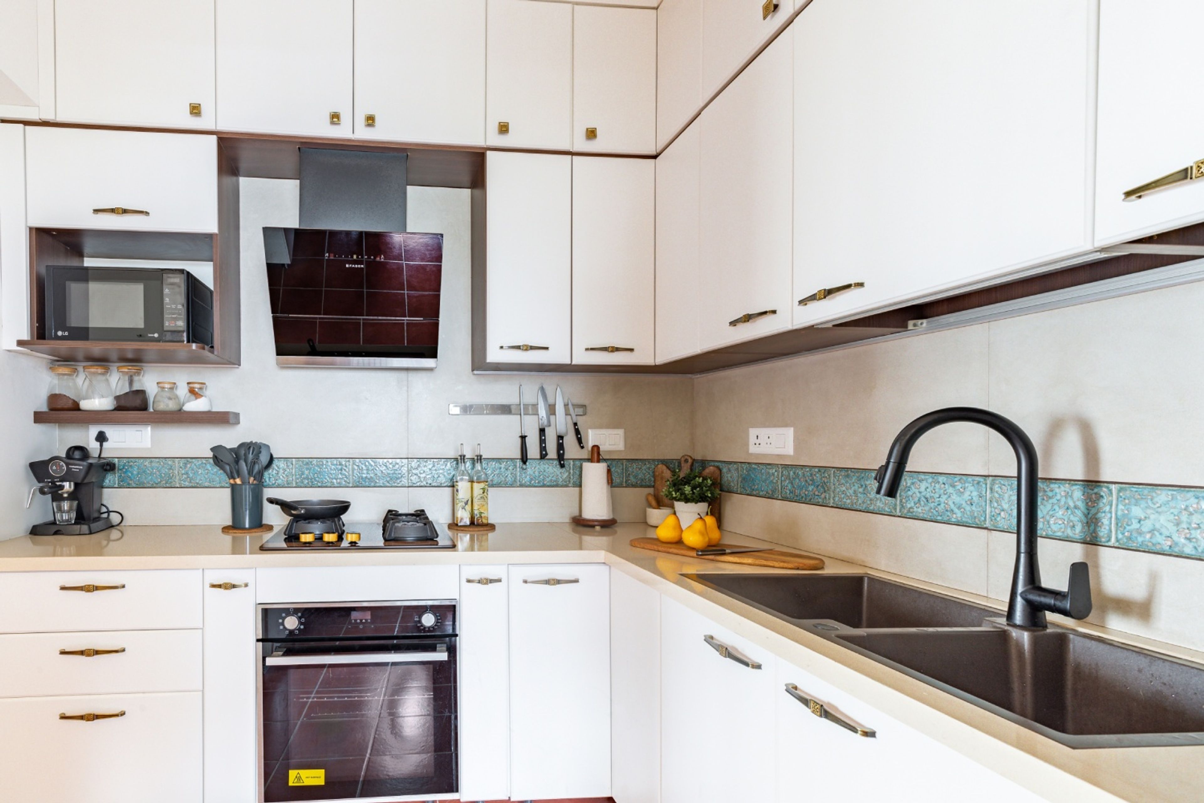 • Layout: L-shaped kitchen