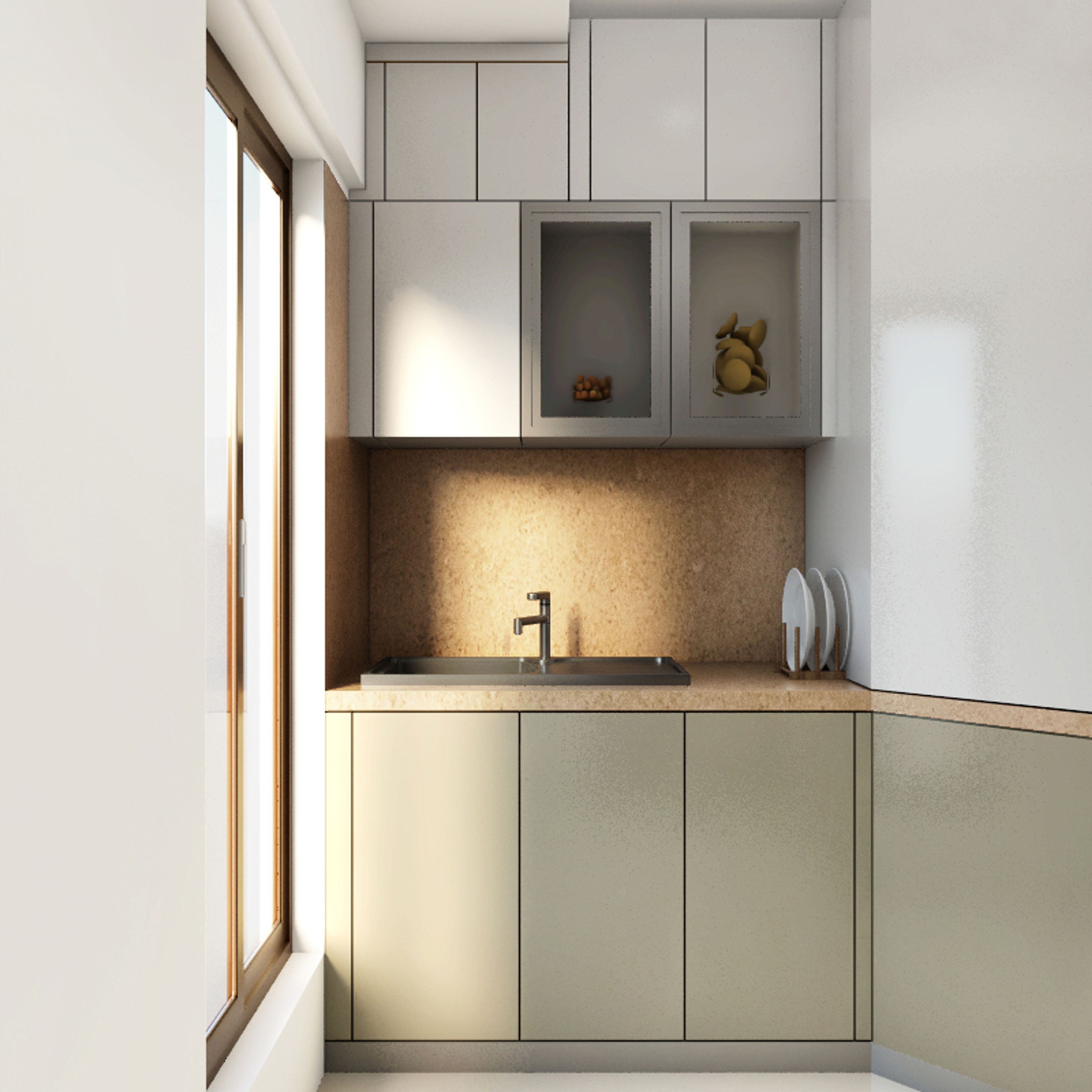 1. Combination of white and grey shades add depth to the kitchen design.